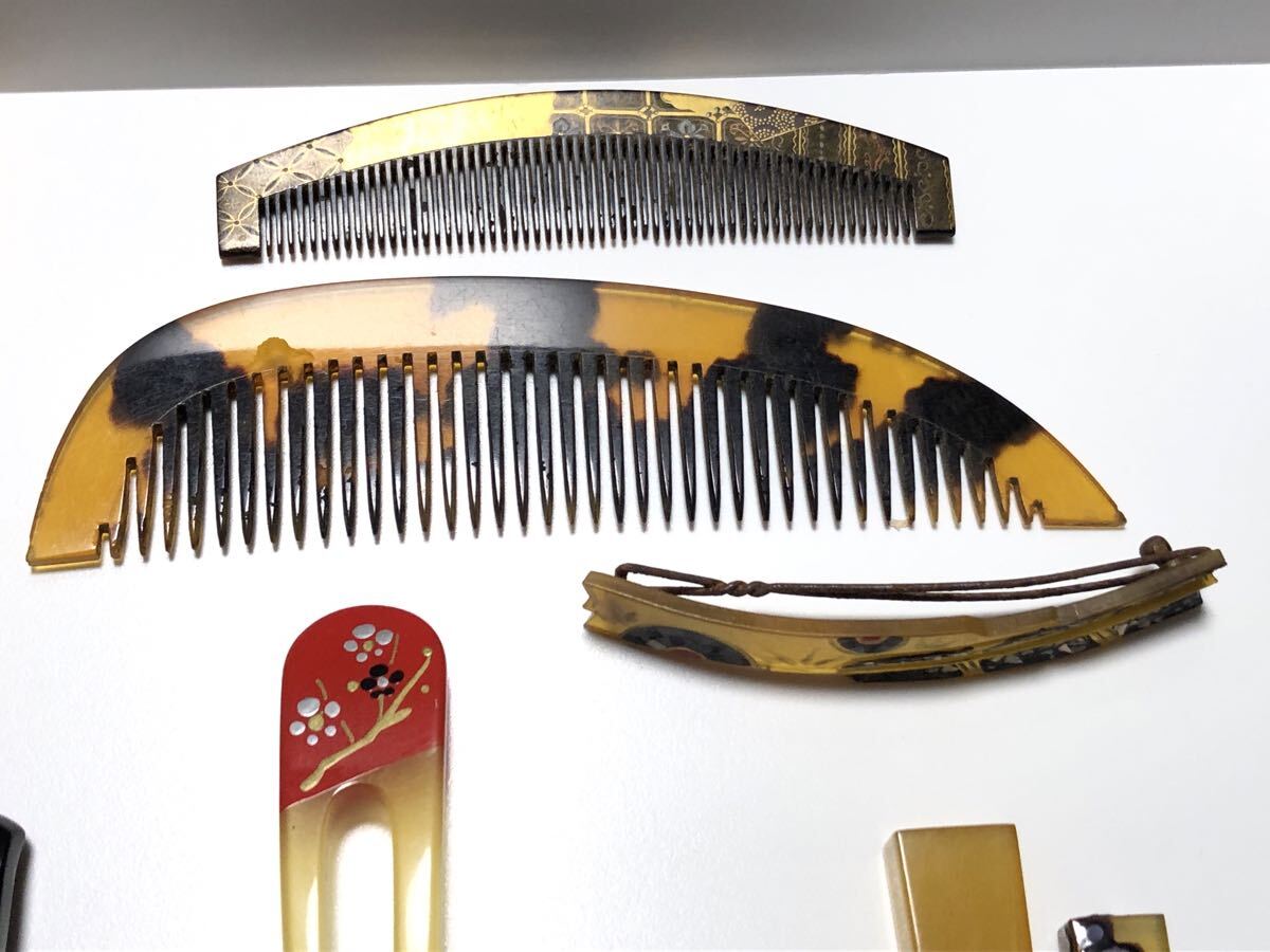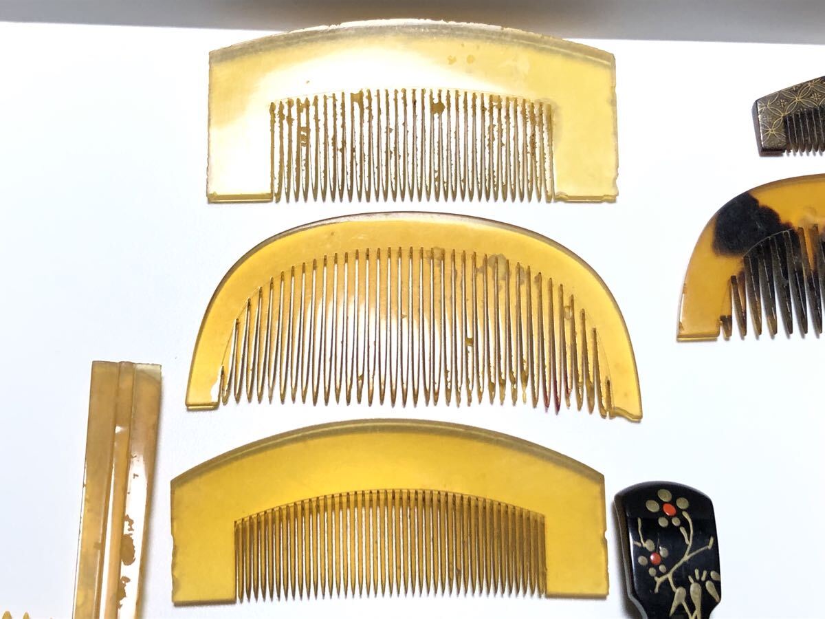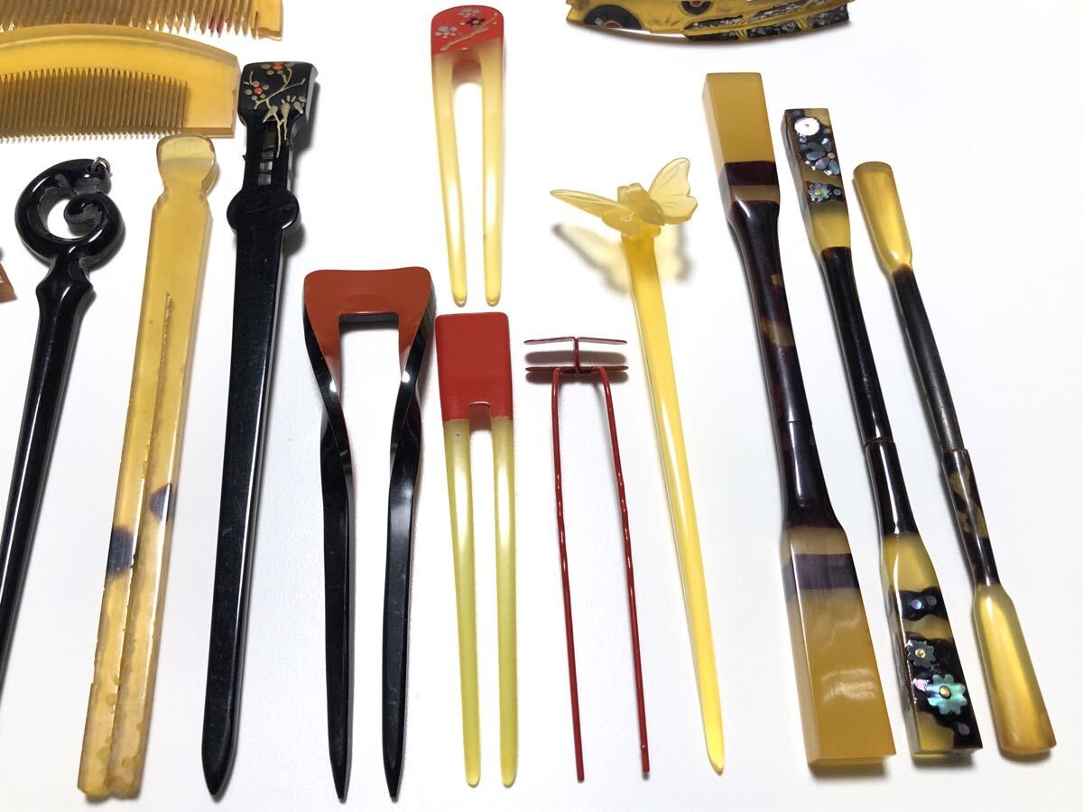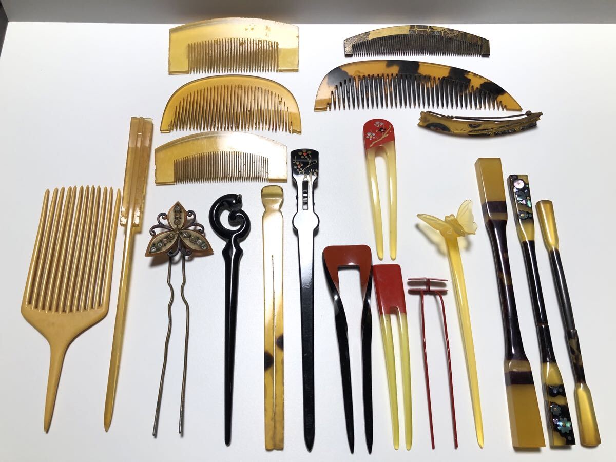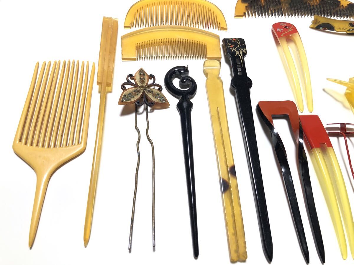 アンティークの本鼈甲、本牛甲、鼈甲風、樹脂を使用した、簪、櫛、笄、バレッタ20点です。ほとんどが虫食い、汚れ、サビなどのある【難あり品】です。