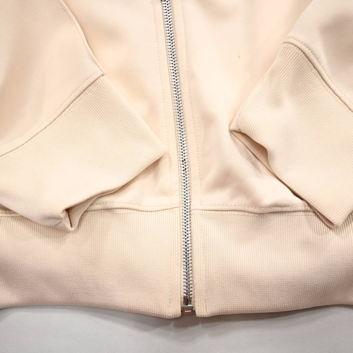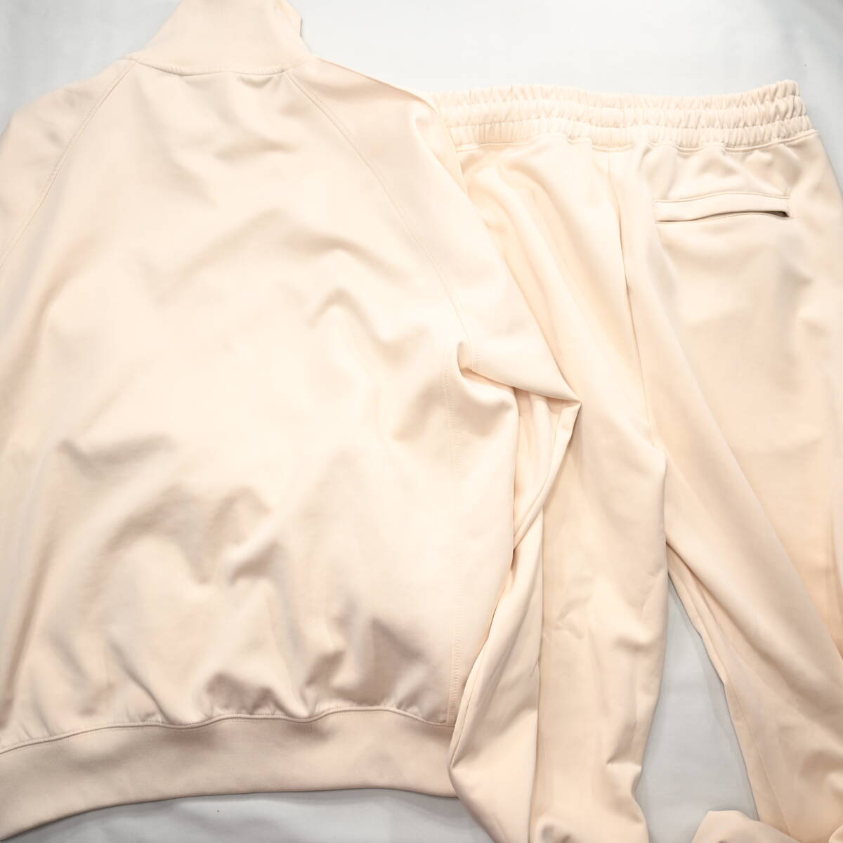 サイズ表記XL(パンツはMですがでかいです。細身長身向け)、色クリームアイボリー系、素材ポリエステル98%ポリウレタン2%(厚手で濃密しっかり高級感、当方詳細不明ですが上級もしくはコレクションモデル?)、ポルトガル製