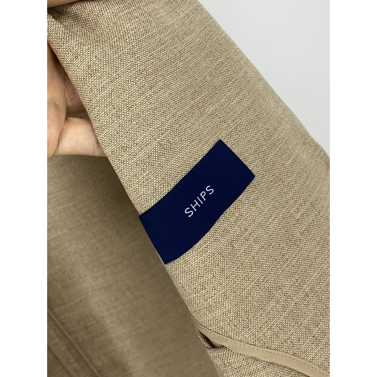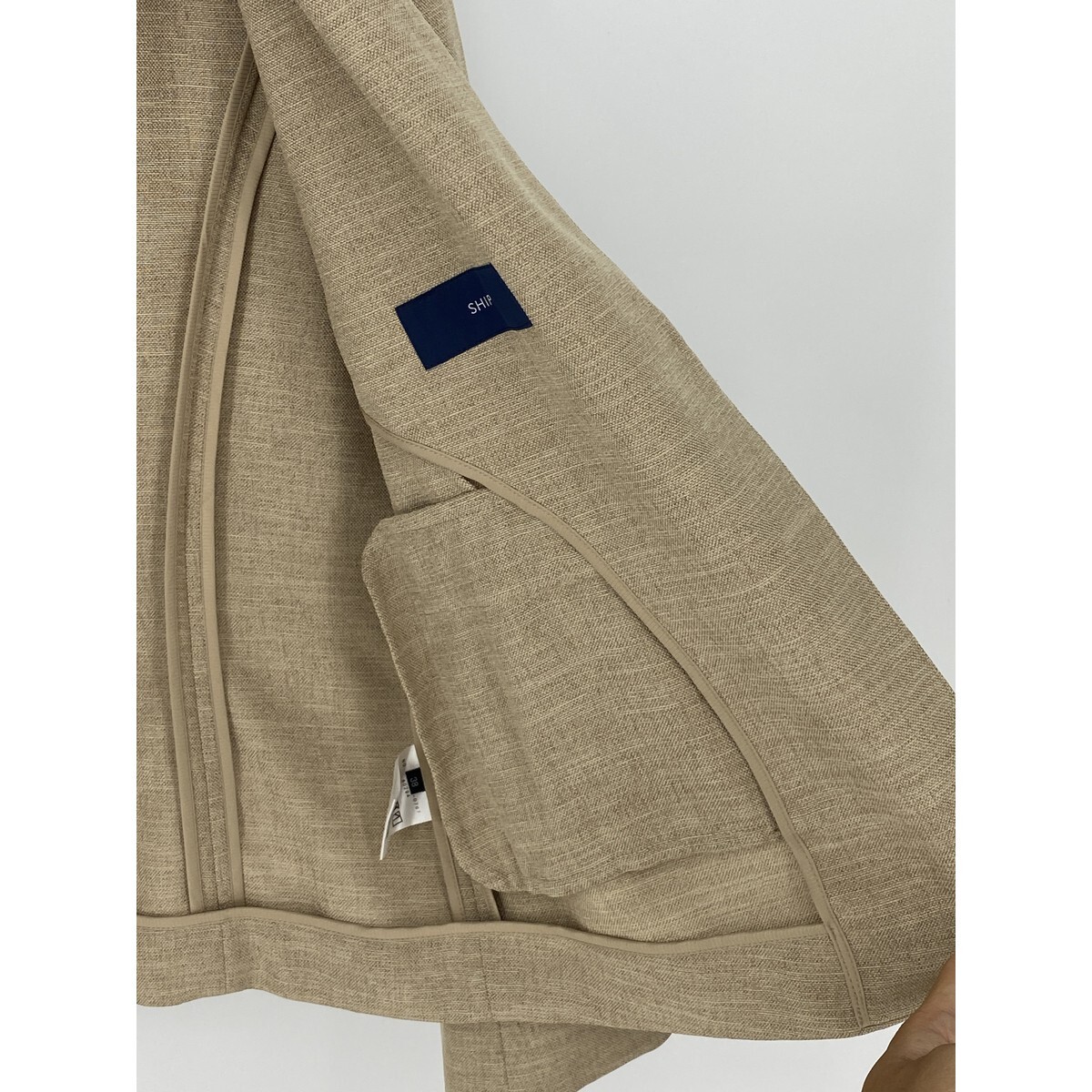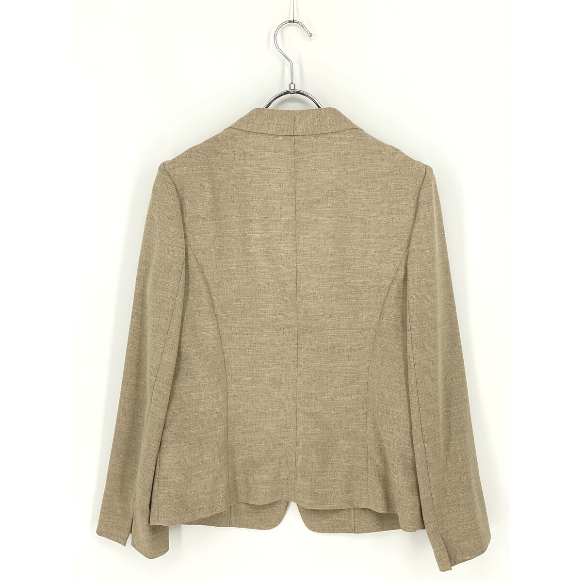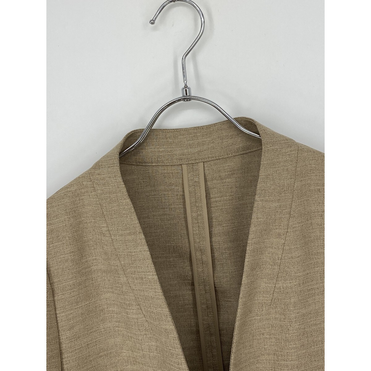 B0448/極美品 SHIPS シップス ツイル 前開き ボタンレス ノーカラー テーラード サマー アンコンジャケット 38 M程 ベージュ レディース