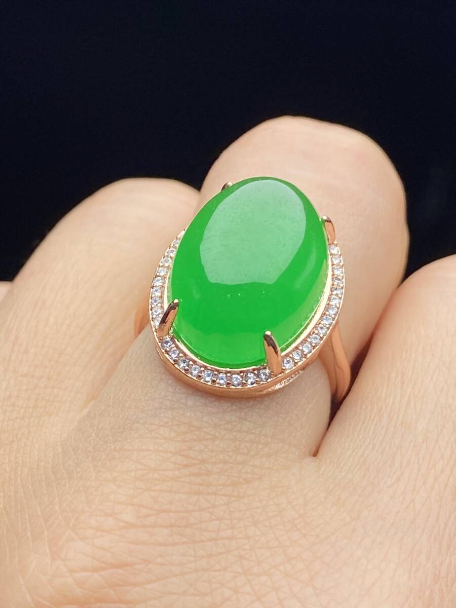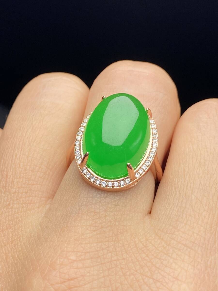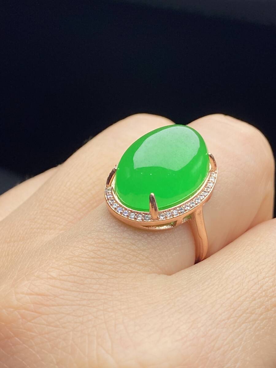 Aグレード翡翠 冰種翡翠 冰種 高氷 満緑 蛋面 戒指 指輪 指環 首飾 贈り物 箱付 時代物 骨董品 旧家蔵出し 唐物 中国古玩 古美術品