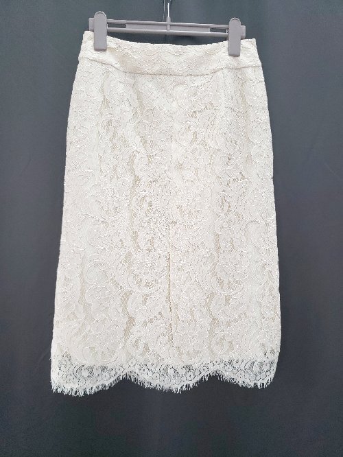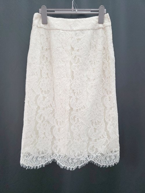 ◇ ⊂ STRAWBERRY FIELDS ストロベリーフィールズ 総レース 膝下丈 タイト スカート サイズ1 アイボリー系 レディース E