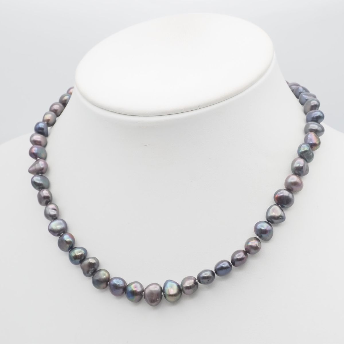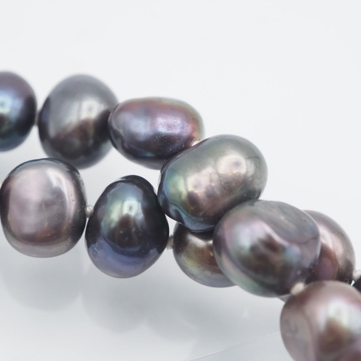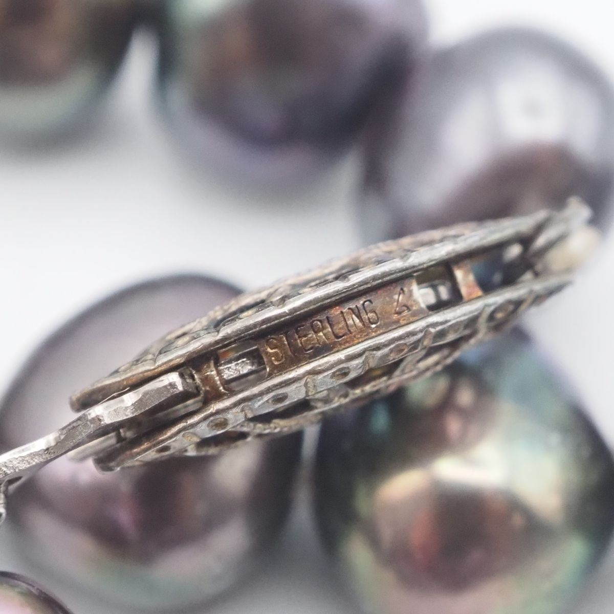 F131 淡水真珠 パール STERLING刻印 ネックレス ピーコック系カラー デザイン シルバー 6月誕生石