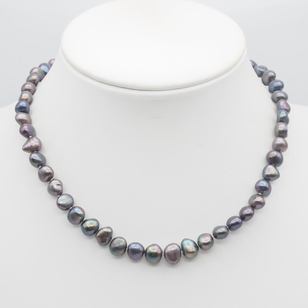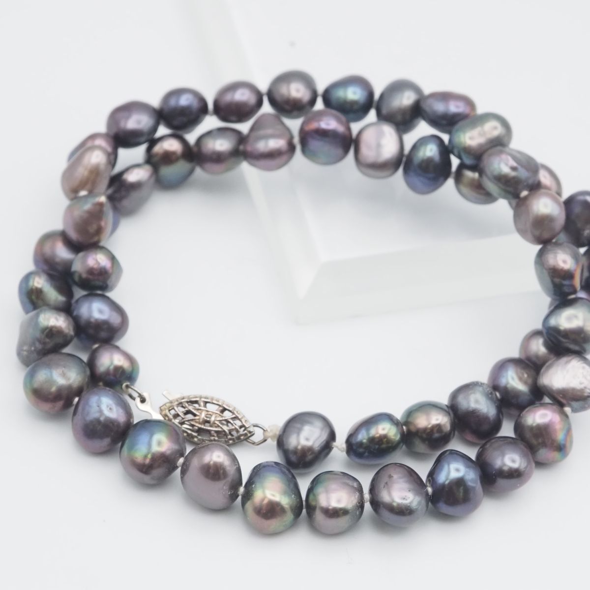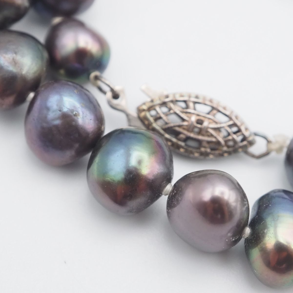 F131 淡水真珠 パール STERLING刻印 ネックレス ピーコック系カラー デザイン シルバー 6月誕生石