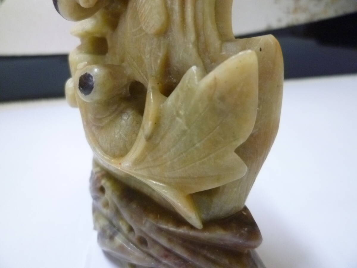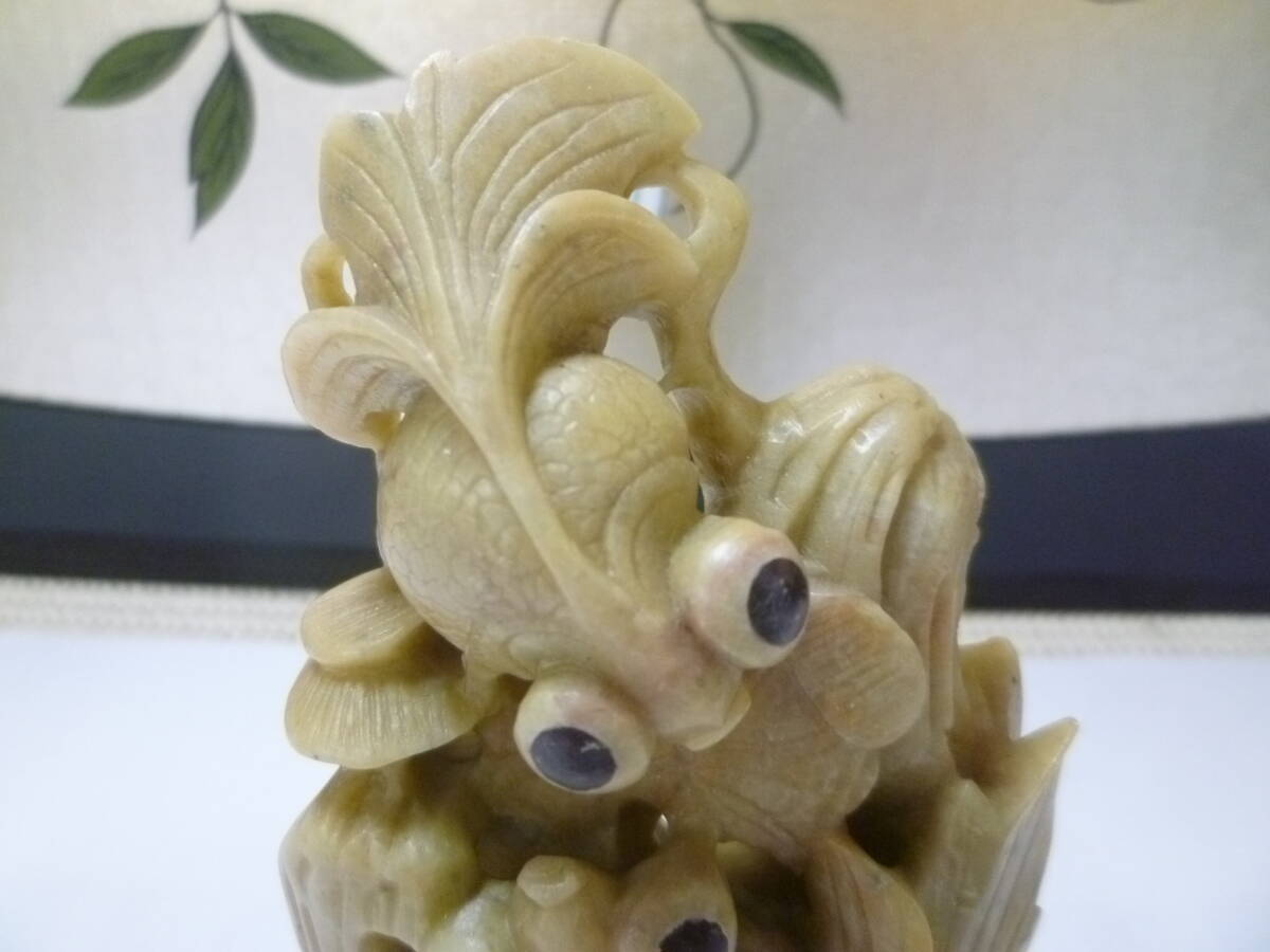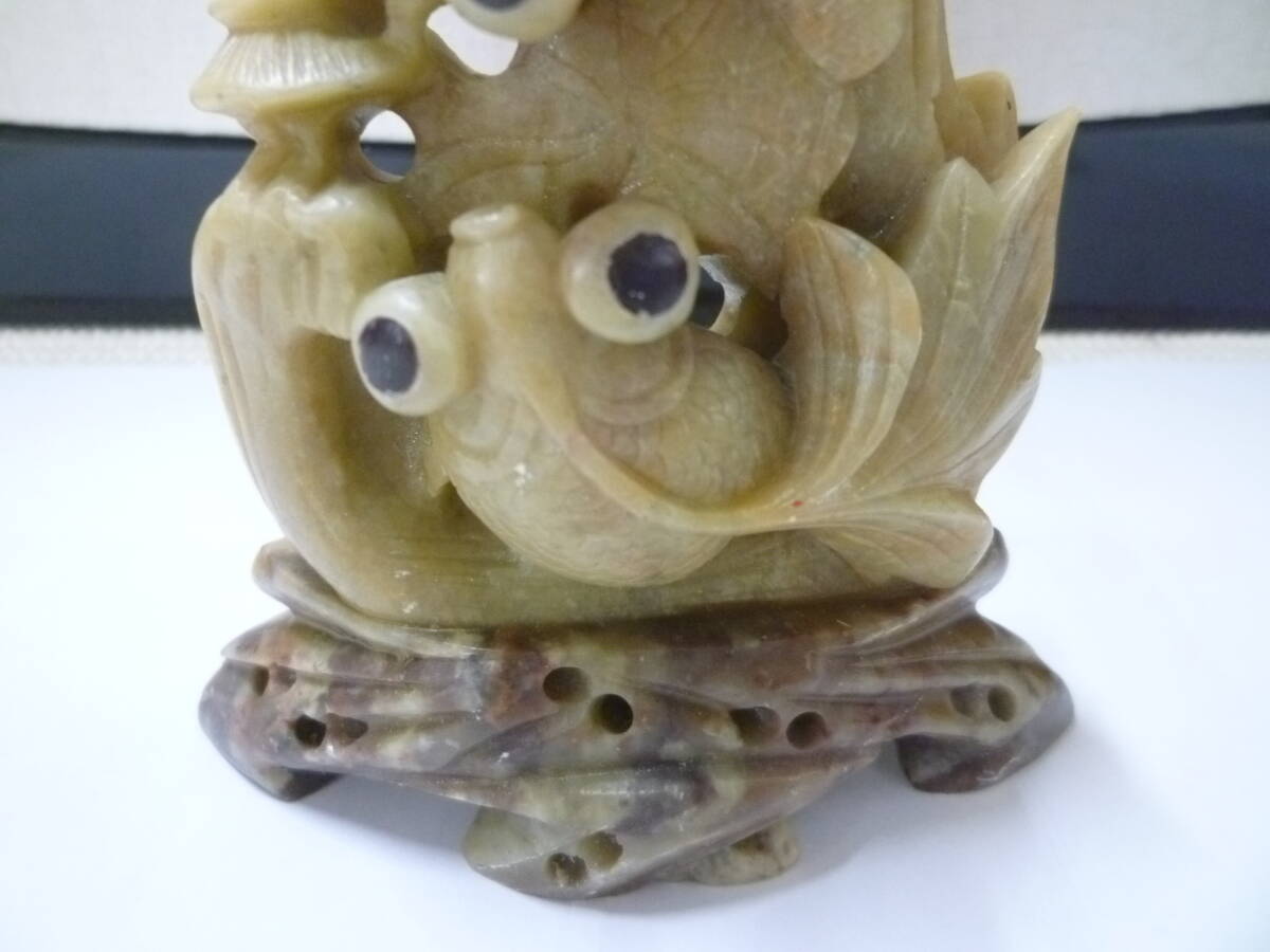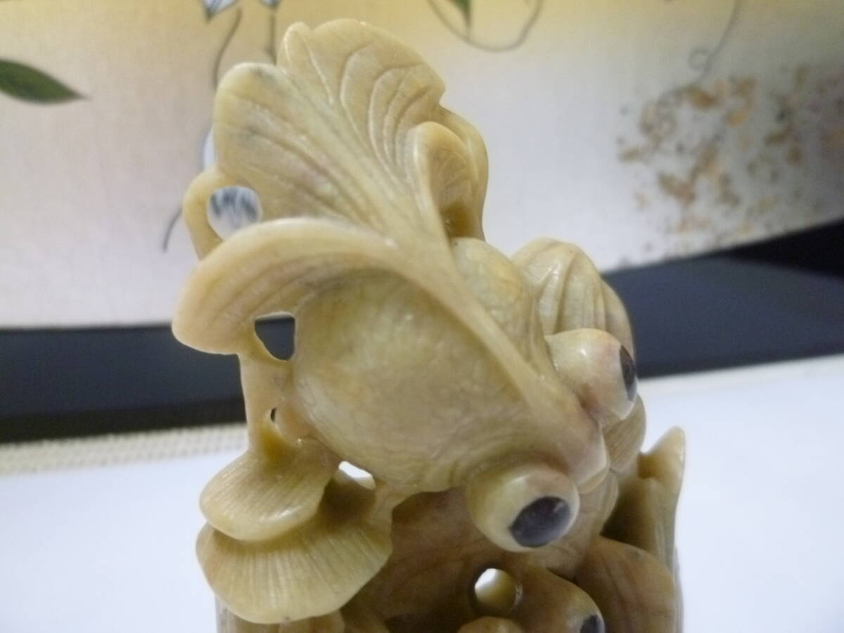25 P №10 中国 寿山石 細密彫刻 「金魚」 置物