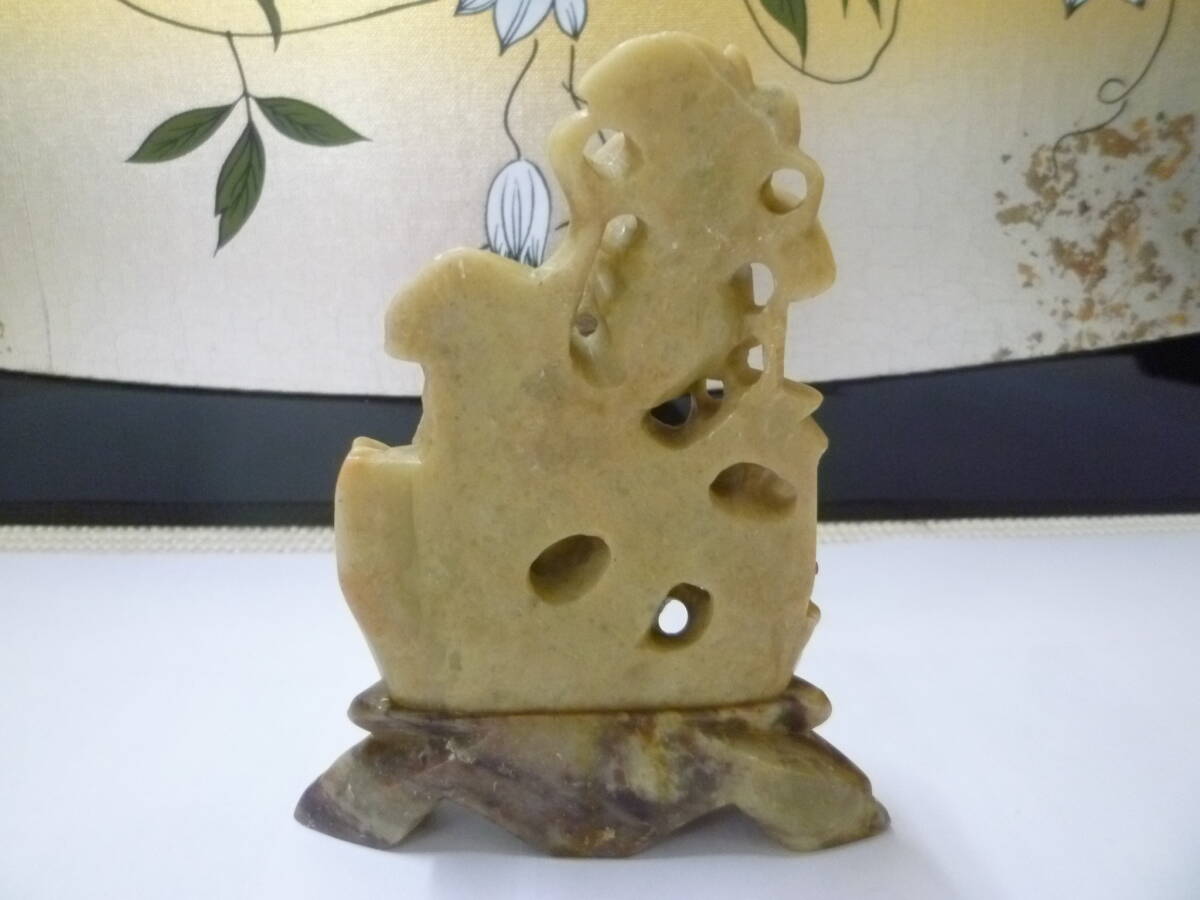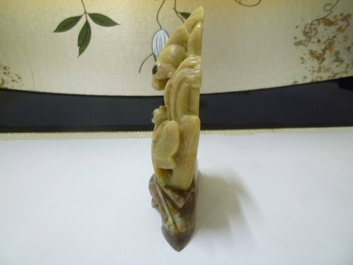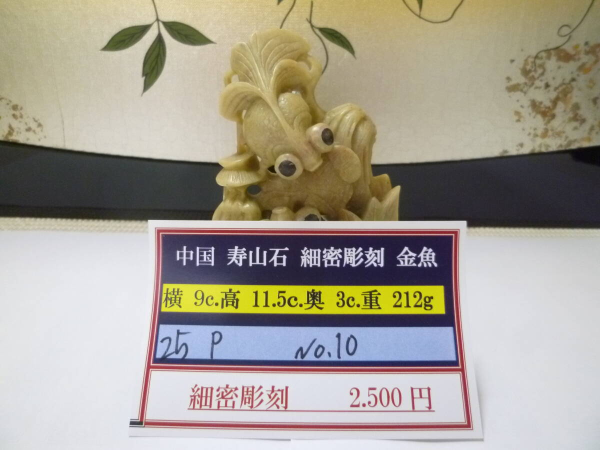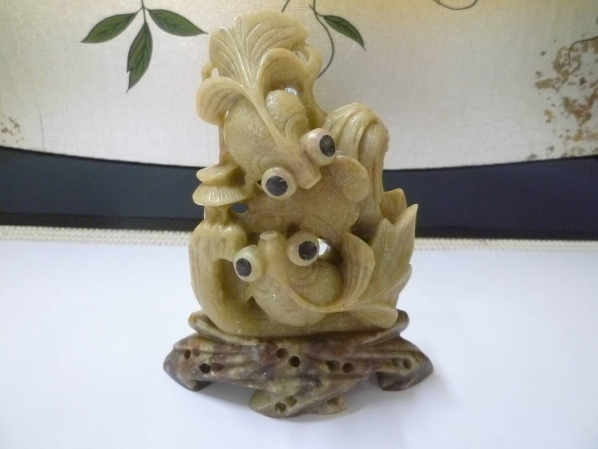 25 P №10 中国 寿山石 細密彫刻 「金魚」 置物