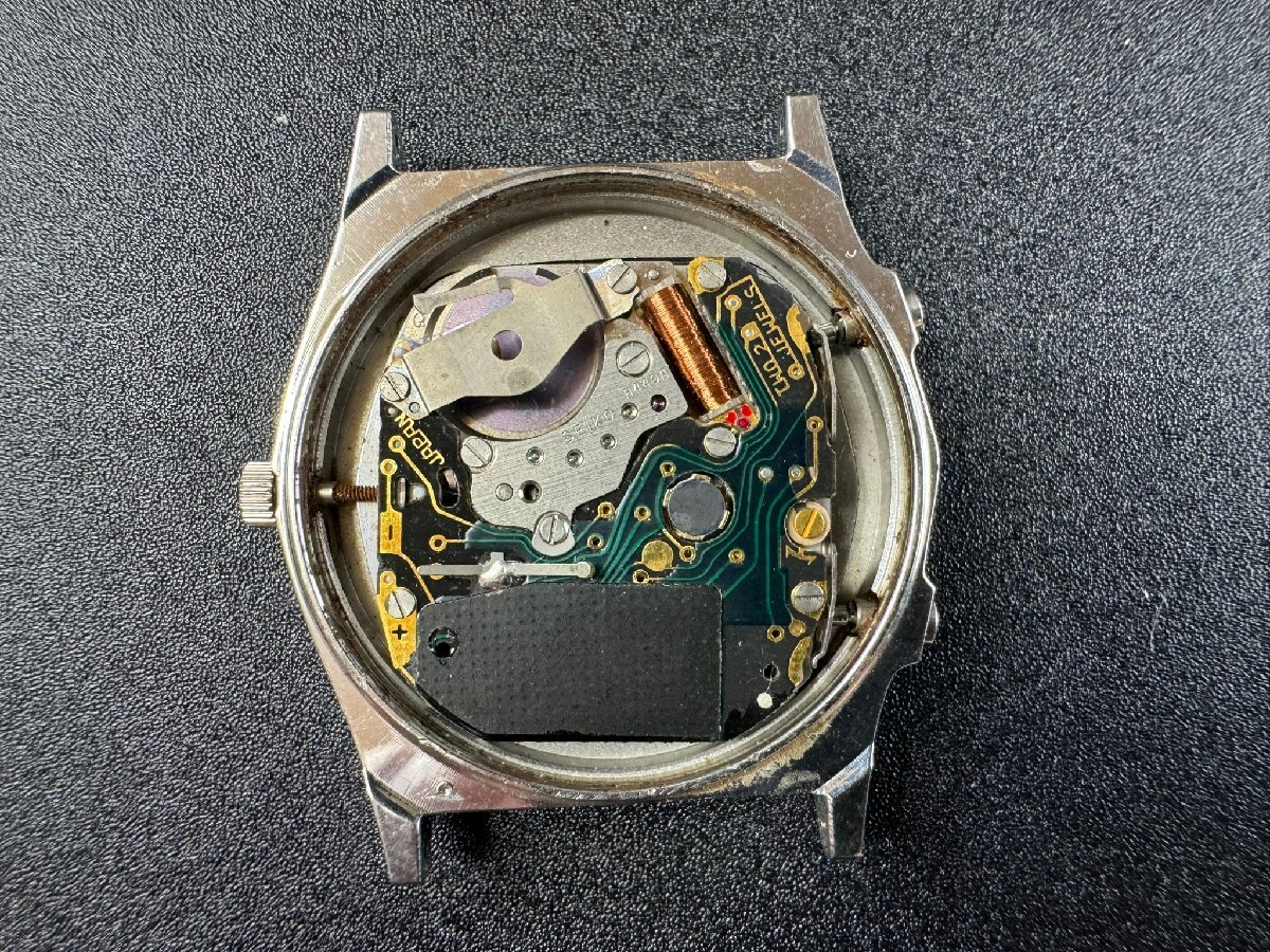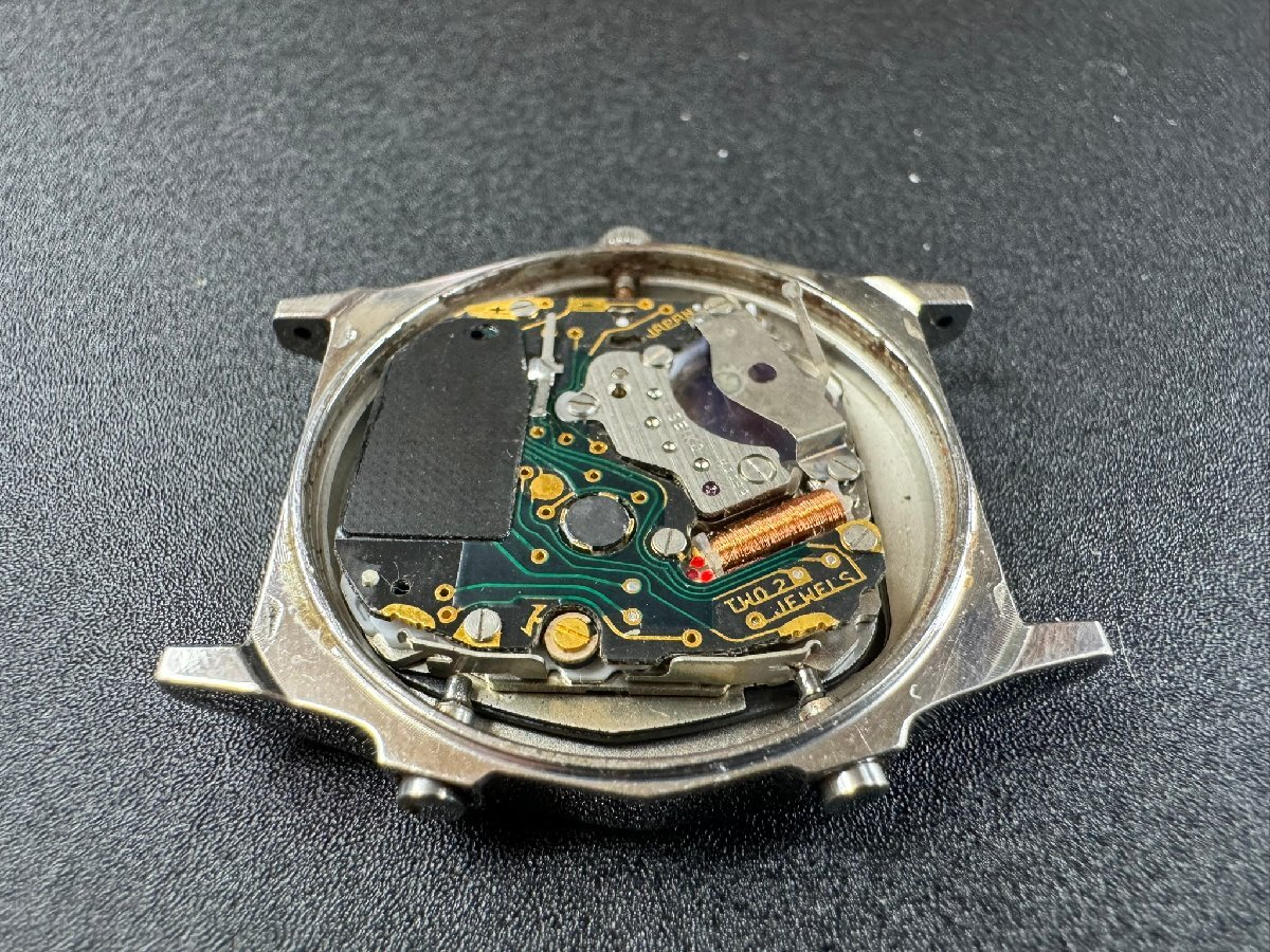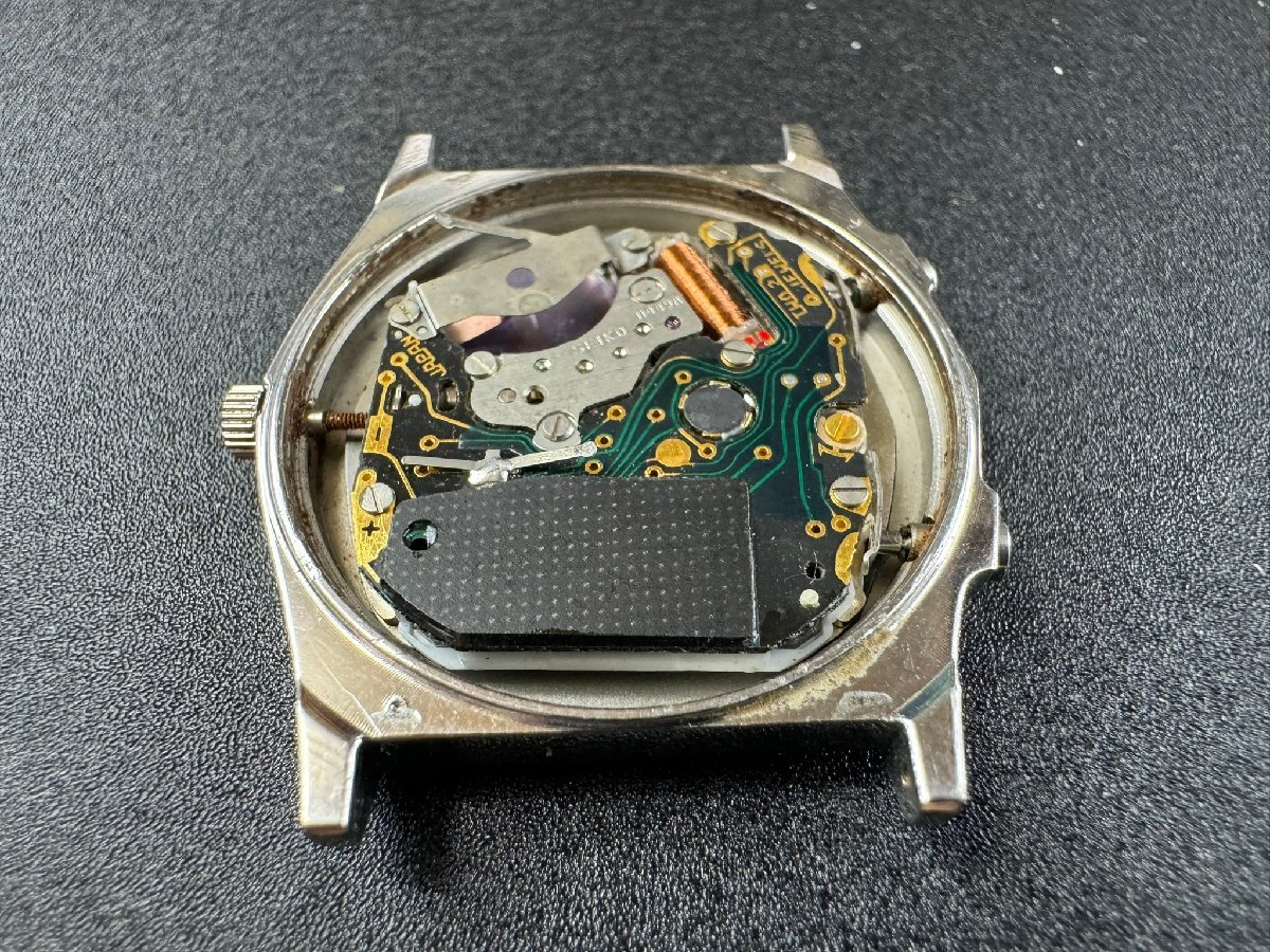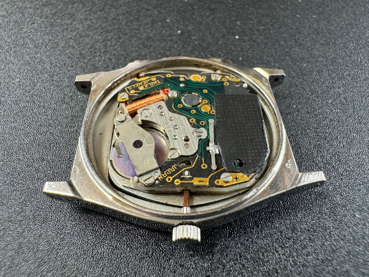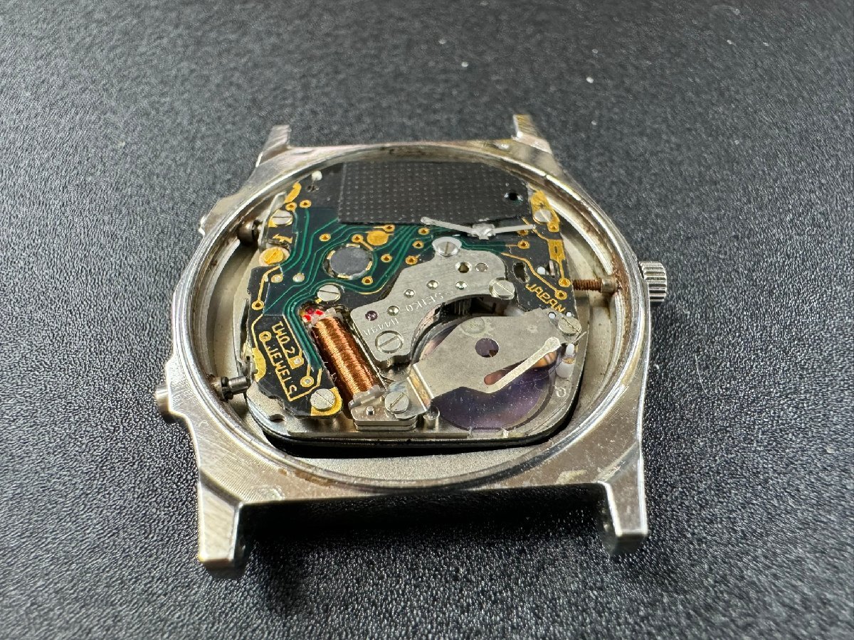 【諸 元】 | 機 番: H449A 寸 法:【横】33.5mm(竜頭含まず)×【縦】39mm×【厚】6mm(裏蓋無し) ※寸法はノギスで測定してますが1mm以下の端数は四捨五入した寸法で記入してます。駆動方式: クォーツ 材 質: ステンレス 製造年月日: 不 明 |