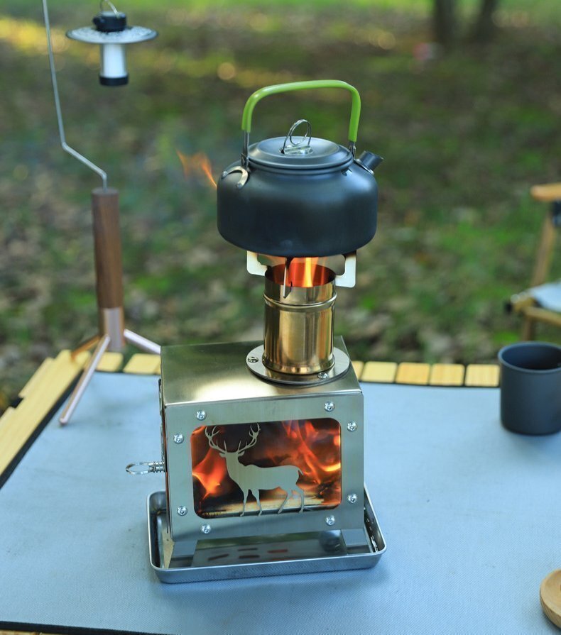 美品 薪 ストーブ アウトドア 調理器具 暖炉 キャンプ 煙突付き 耐熱ガラス窓付き 屋外 小型焚き火台 BBQ コンロ ステンレス鋼