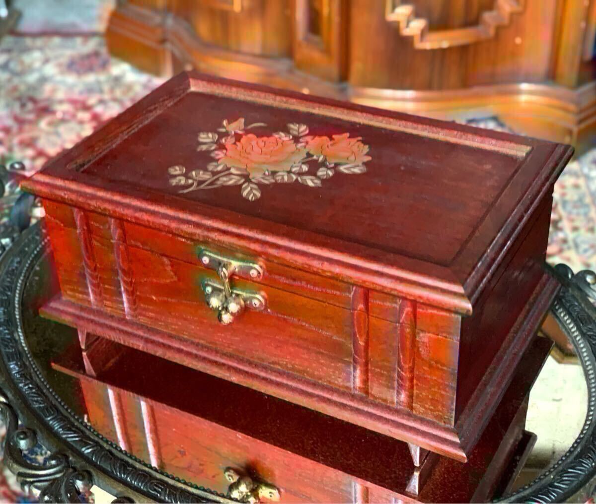 レトロな雰囲気で、とても味わいあるジュエリーボックスです
