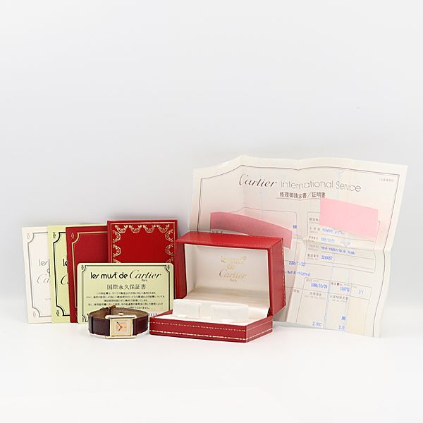 デッドストック級 稼働 永久保証/箱付 カルティエ マストタンク SV925 アイボリー文字盤 手巻 レディース腕時計 OGH 9542ABC0719900