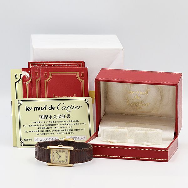 デッドストック級 国際永久保証書/箱付 カルティエ マストタンク SV925 アイボリー 手巻 レディース腕時計 NSY12804ABC 0072710 7BJK