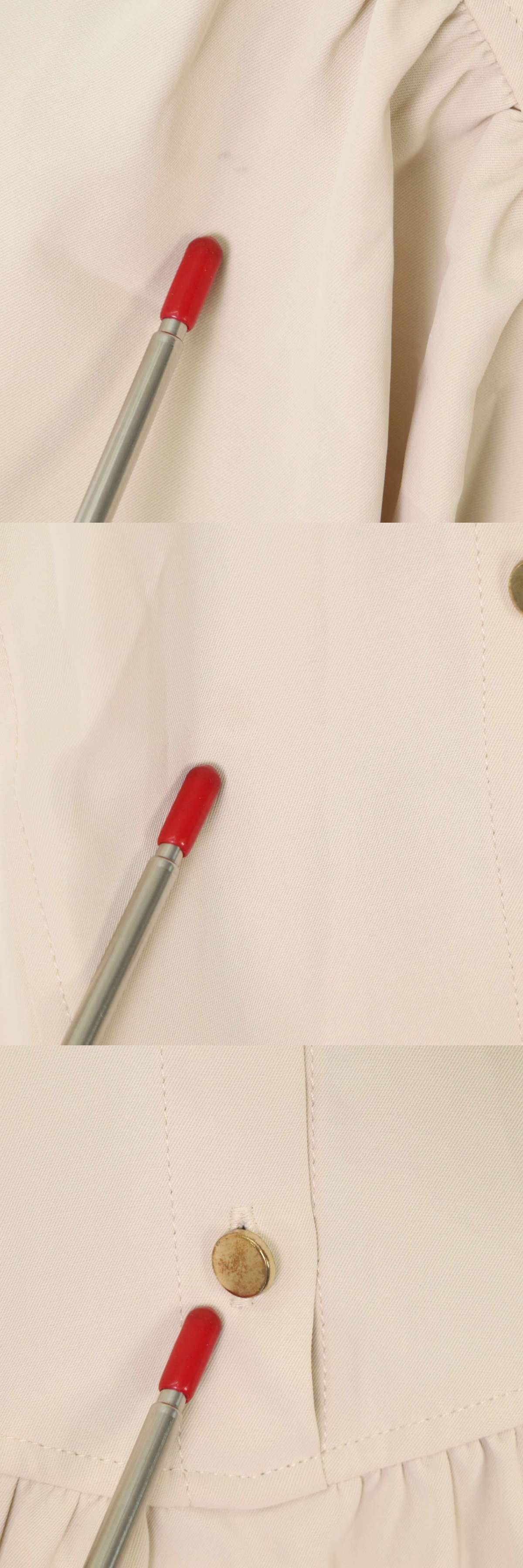 数ヵ所にごく僅かな汚れ、ボタンに僅かなスレがございます。着用に問題はございません。