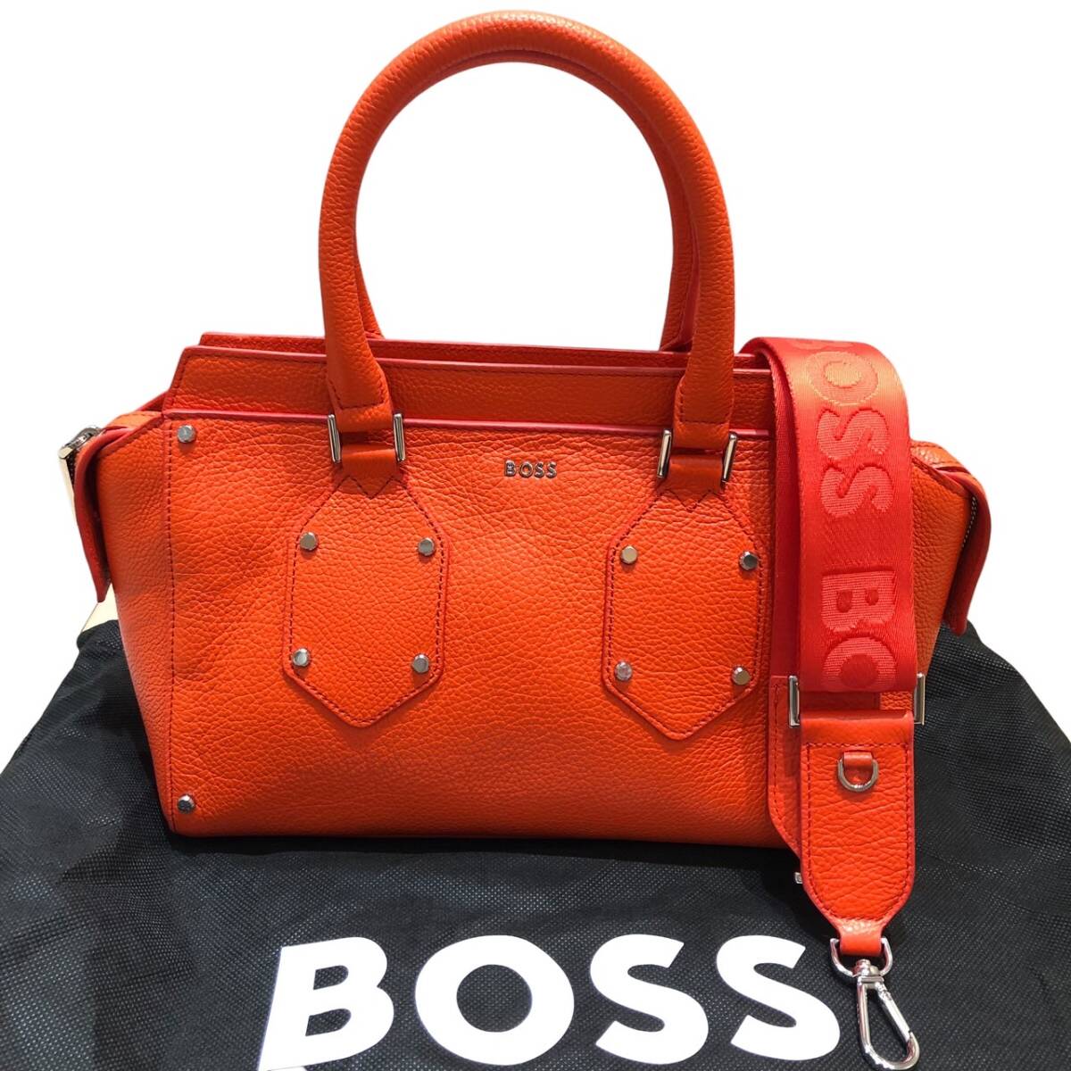 BOSS ボス ハンドバッグ 2WAY グレイン レザー オレンジ |