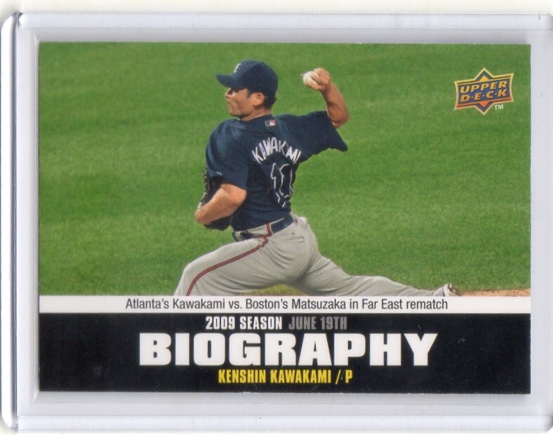 | ★商品説明★ | 2010UD SERIES 1 SEASON BIOGRAPHY #SB-91 ---------------------------------------------------- ■川上憲伸 MLB成績 2年 2009-10年 ブレーブス 50試合 8勝22敗1セーブ 243 2/3回 164奪三振 防御率4.32 川上ファンの方、是非どうぞ! |