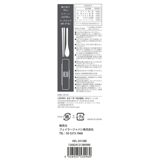 サイズ ケース奥行き4.7cm×横約18.8cm 高さ1.8 cm 箸長さ18cm スプーン全長18cm