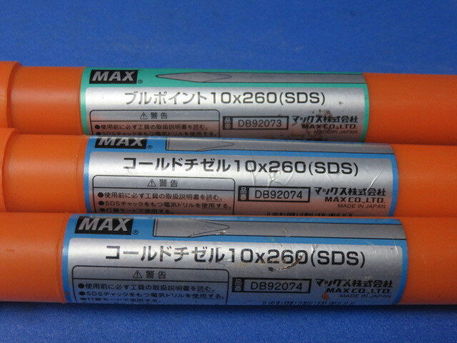 MAX SDS ゴールドチゼル2本,ブルポイント1本 10×260(SDS) 計3本セット