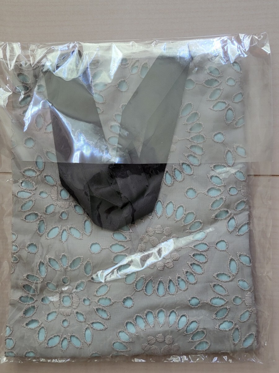 素材 綿レース(グレーベージュ) 裏地 綿(ブルー)