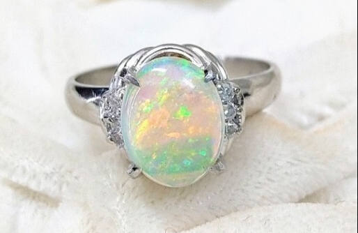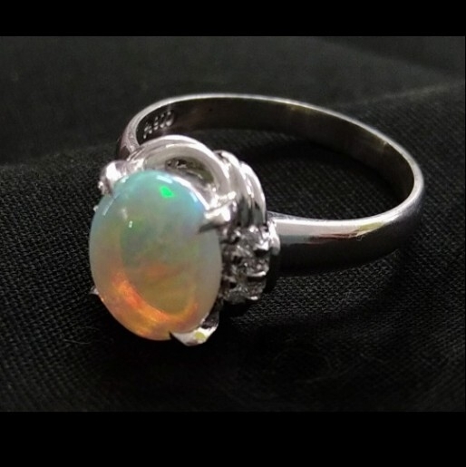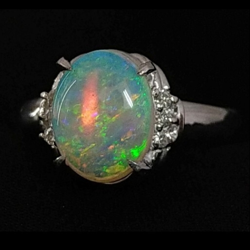 遊色豊かな天然オパールです。脇石は天然ダイヤモンド。