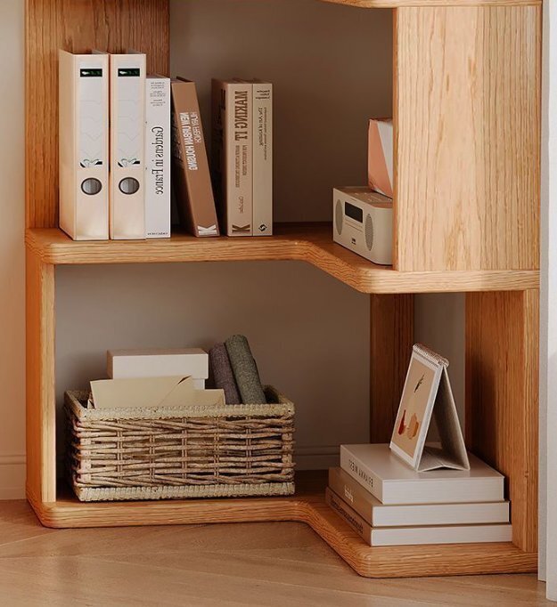 無垢材棚着地角家庭用壁際本棚リビング多層角収納簡易本棚