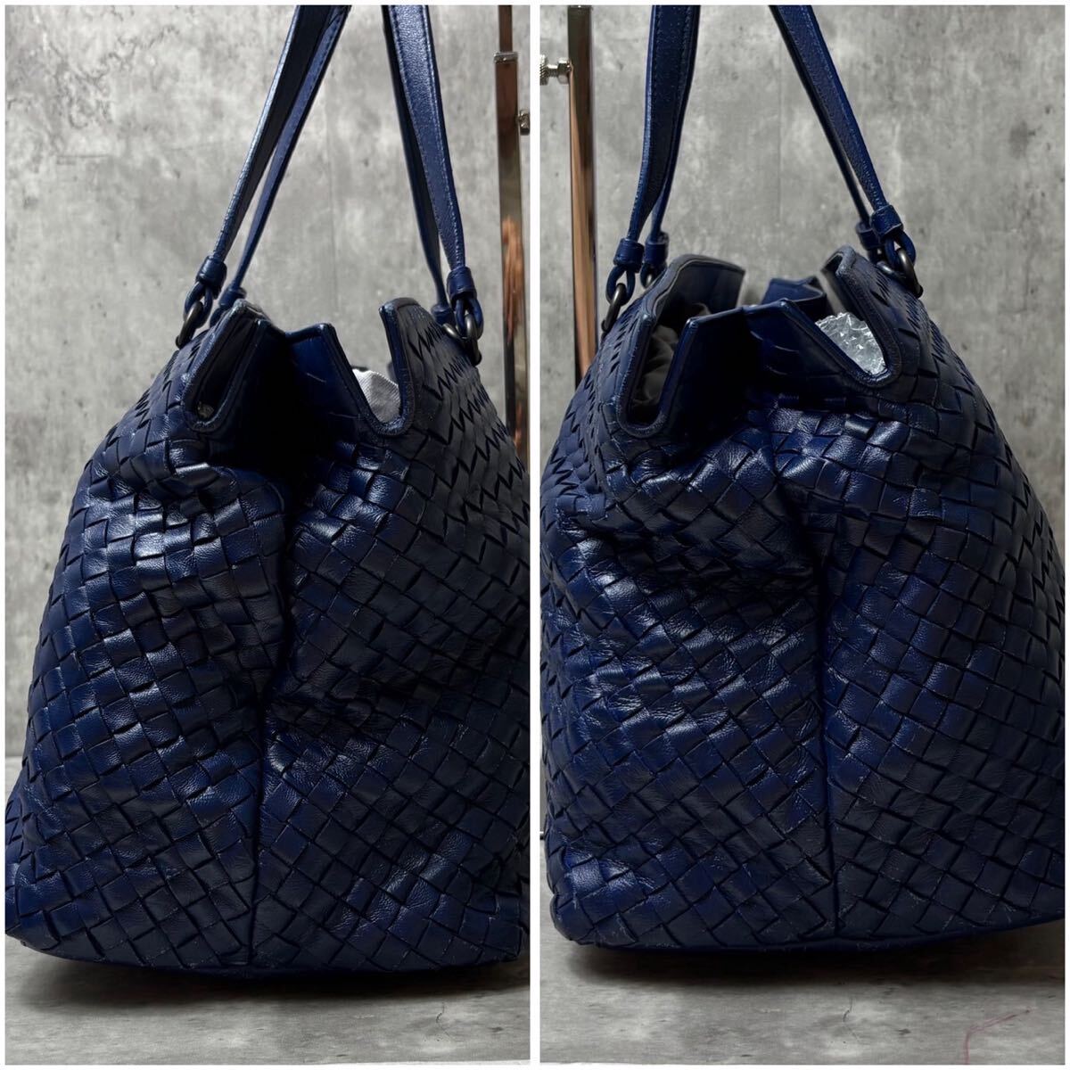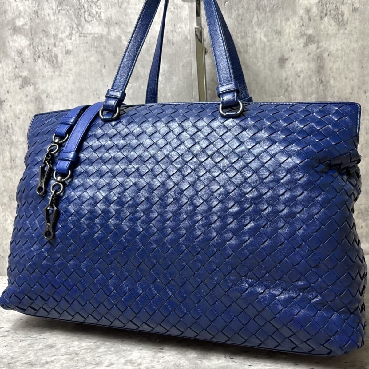 ボッテガを象徴するイントレチャートに、鮮やかで希少なブルーカラー。