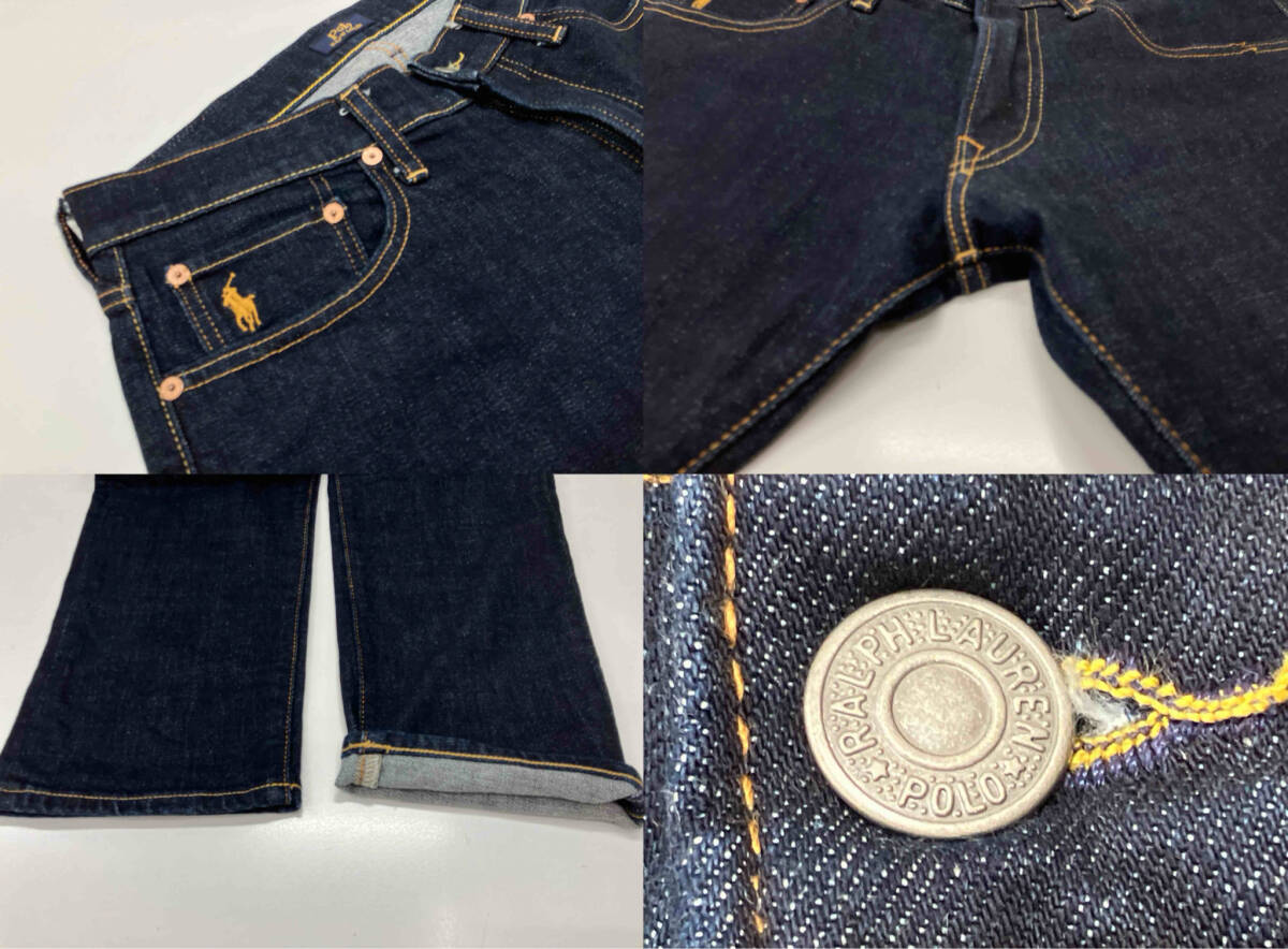 ウエスト: 90cm / ヒップ: 100cm 腿周り: 46cm 股上:21cm 股下: 74cm 綿99% ポリウレタン1%/牛革 |