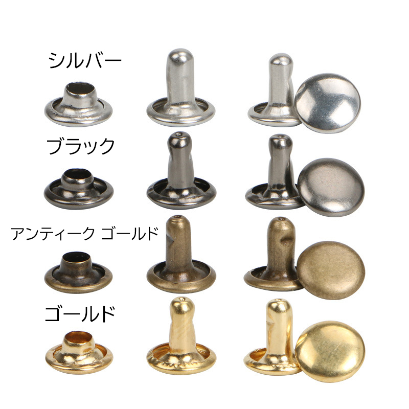 レザークラフト 両面カシメ 100組セット (頭8mmx足8mm アンティーク ゴールド)