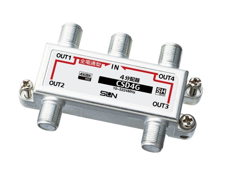 送料無料 サン電子 4K8K衛星放送対応 4分配器 全端子電通過型