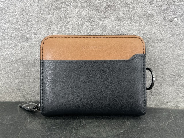 送料無料 未使用 RONSOU 本革 コインケース 小銭入れ カードケース 財布 ブラック×ブラウン / 600432 在★36