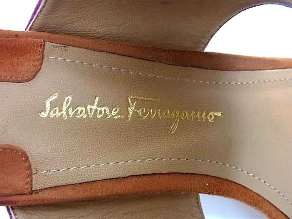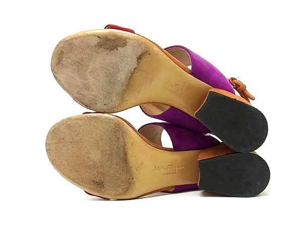 ■美品■ Salvatore Ferragamo フェラガモ スエード サンダル ヒール 表記サイズ 5 1/2 靴 シューズ パープル系 DI6926