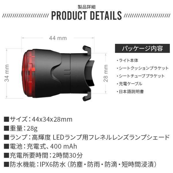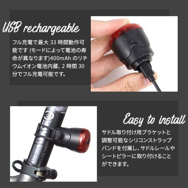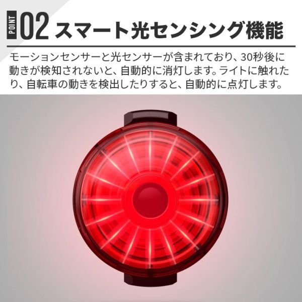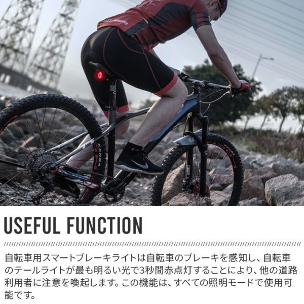 自転車用テールライト セーフティライト USB充電式 自動水平調節機能 スマートブレーキ 警告 IPX6防水 自動 点滅 6つ調光モード 自動点灯