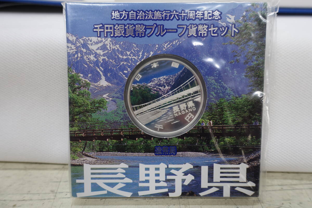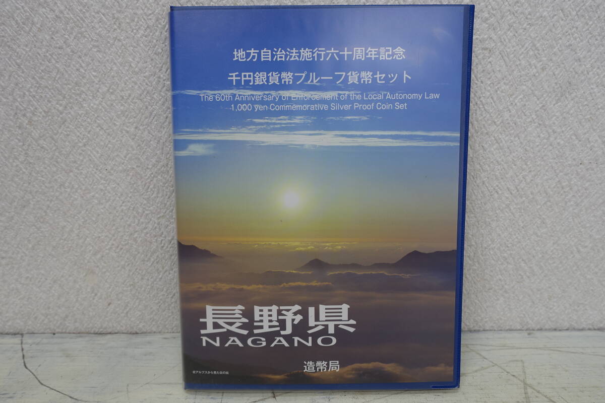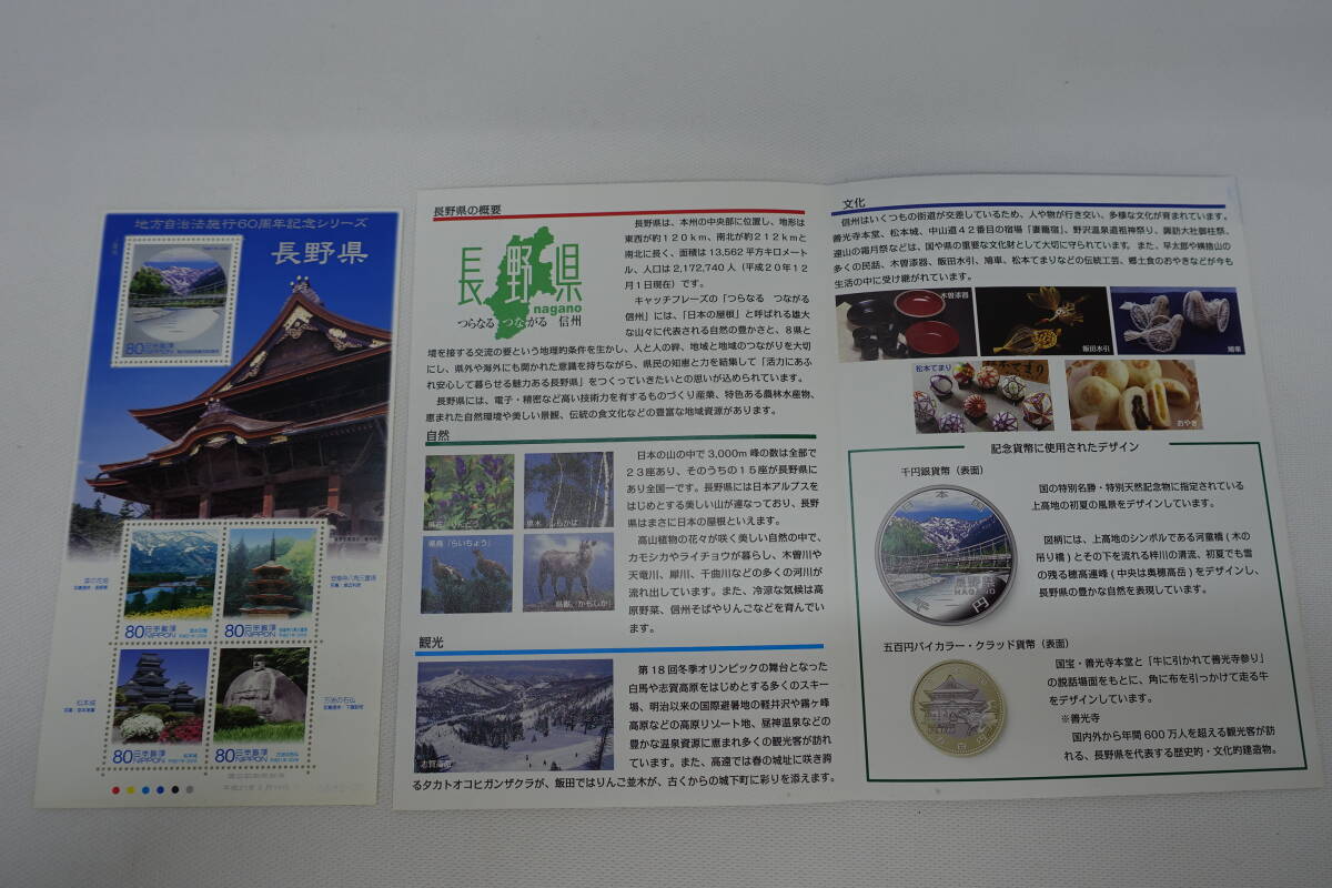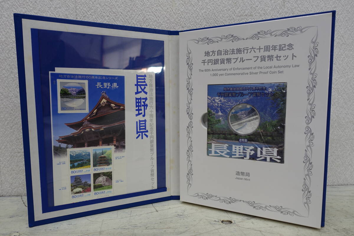 (27)地方自治法施行六十周年記念 千円銀貨幣プルーフ貨幣セット【長野県】Bセット・切手(80円×5枚)