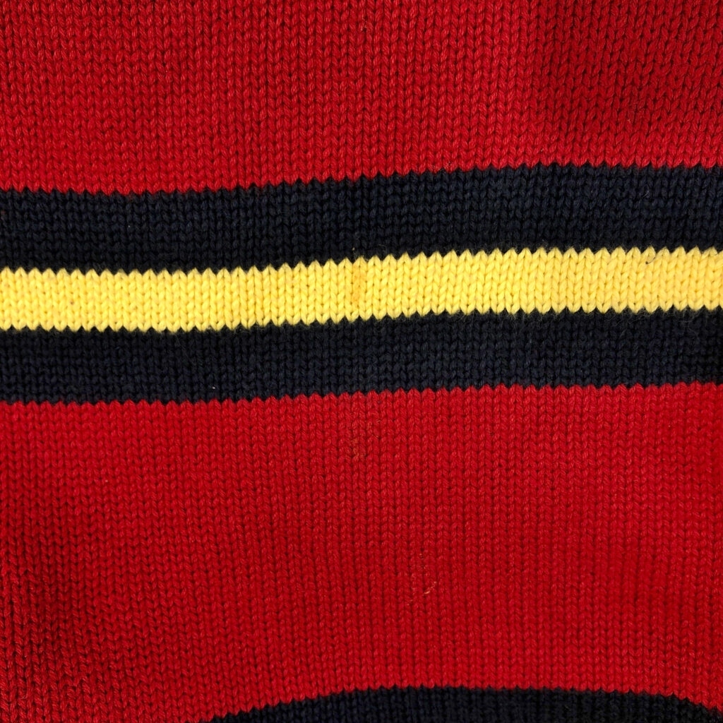 【商品管理番号】 S1360 【ブランド】 TOMMY HILFIGER/トミーヒルフィガー 【サイズ】 L 【実寸サイズ】 肩幅:約52cm 着丈:約70cm 身幅:約62cm 袖丈:約60cm 【主な素材】 表地 : コットン 【色】 レッド 【仕様】 ボーダー 【状態】 汚れ:腹部、裾 |