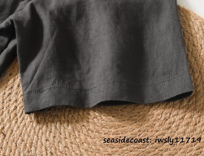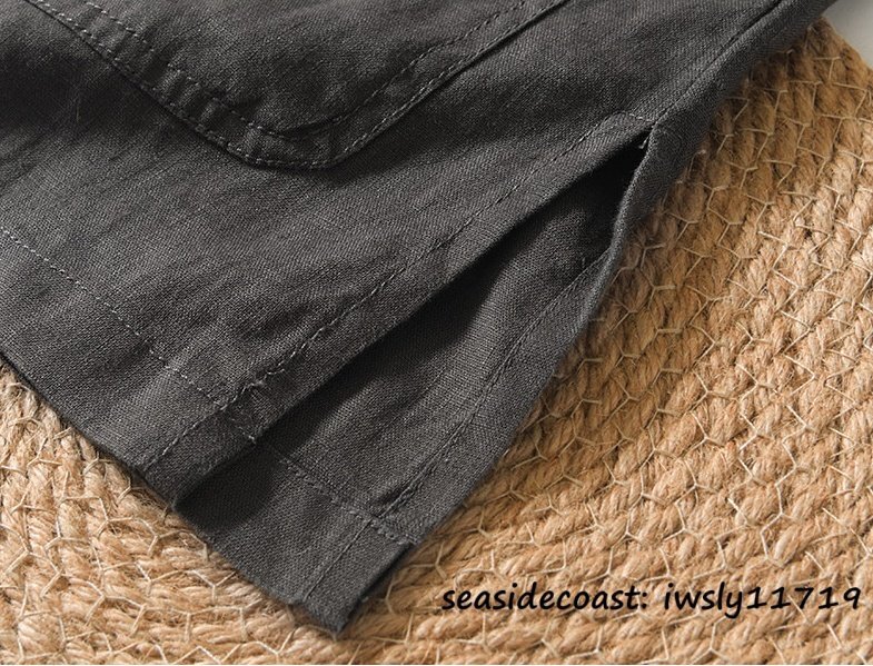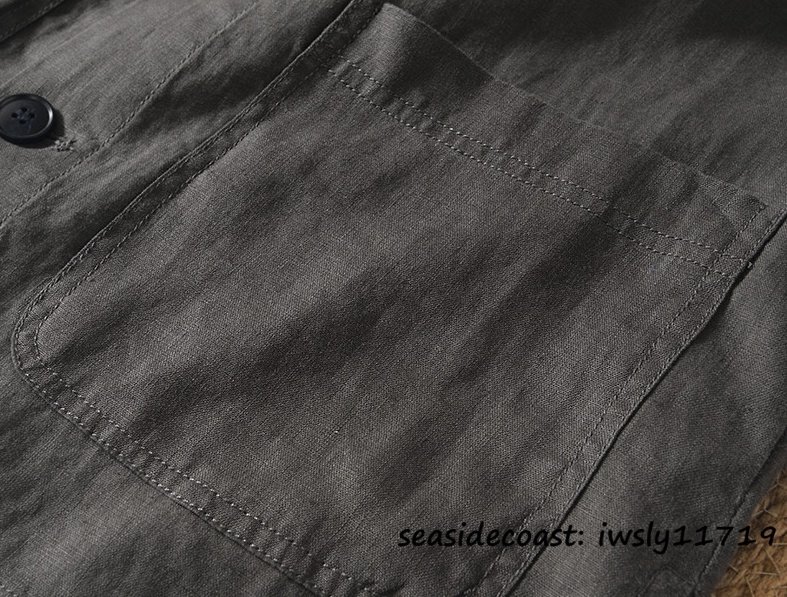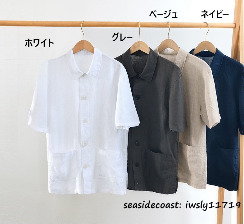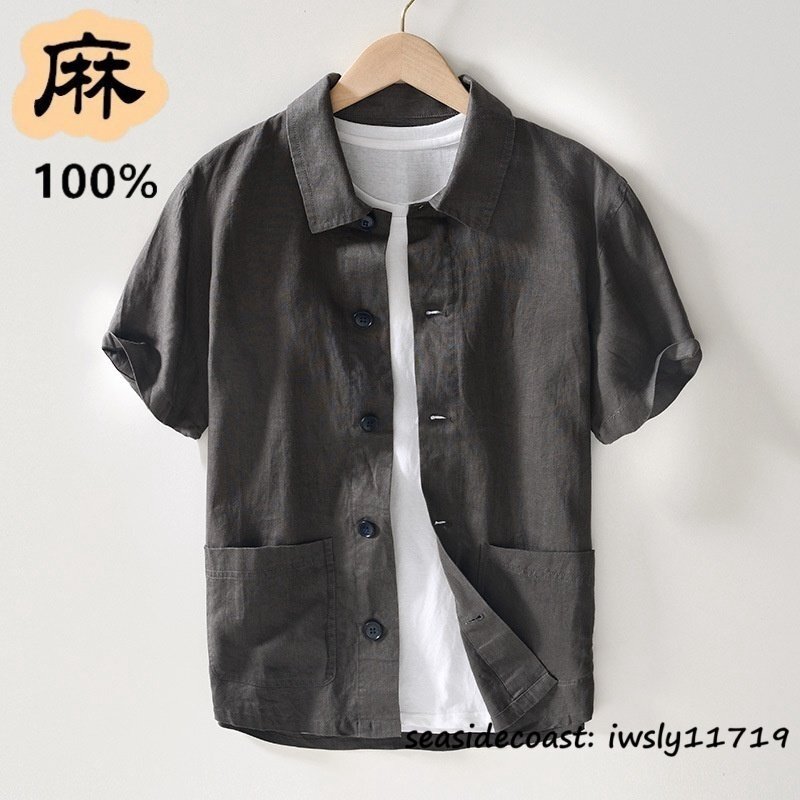 夏新品 リネンシャツ 半袖シャツ 無地 メンズシャツ 亜麻100% ジャケット 麻シャツ 清涼 サマー 快適 ヴィンテージ 心地良し グレー M