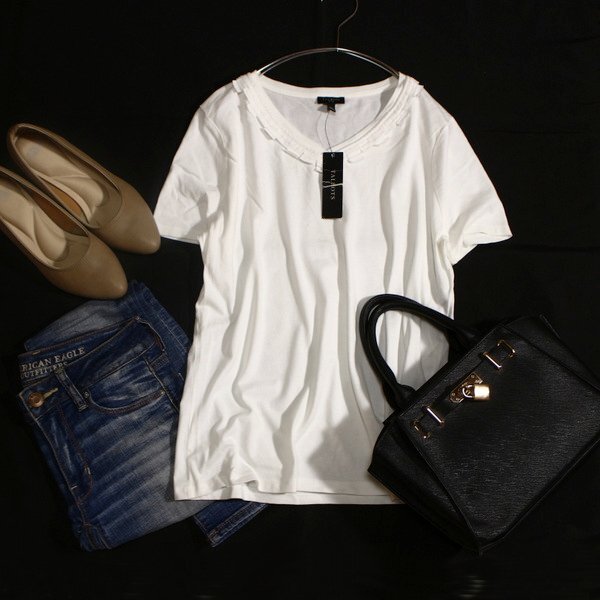 美品 TALBOTS タルボット フリル襟 ストレッチ Tシャツ L 春 夏 25A09