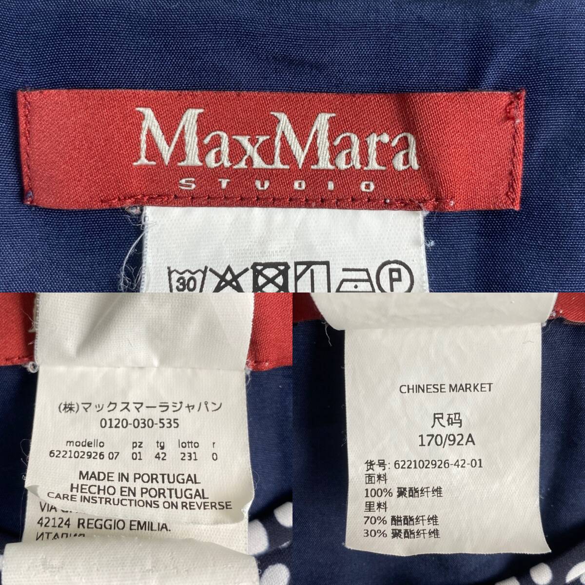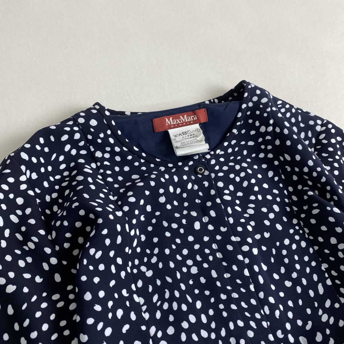 【ポイント】MaxMara ドット柄 ネイビー ホワイト L・XL相当