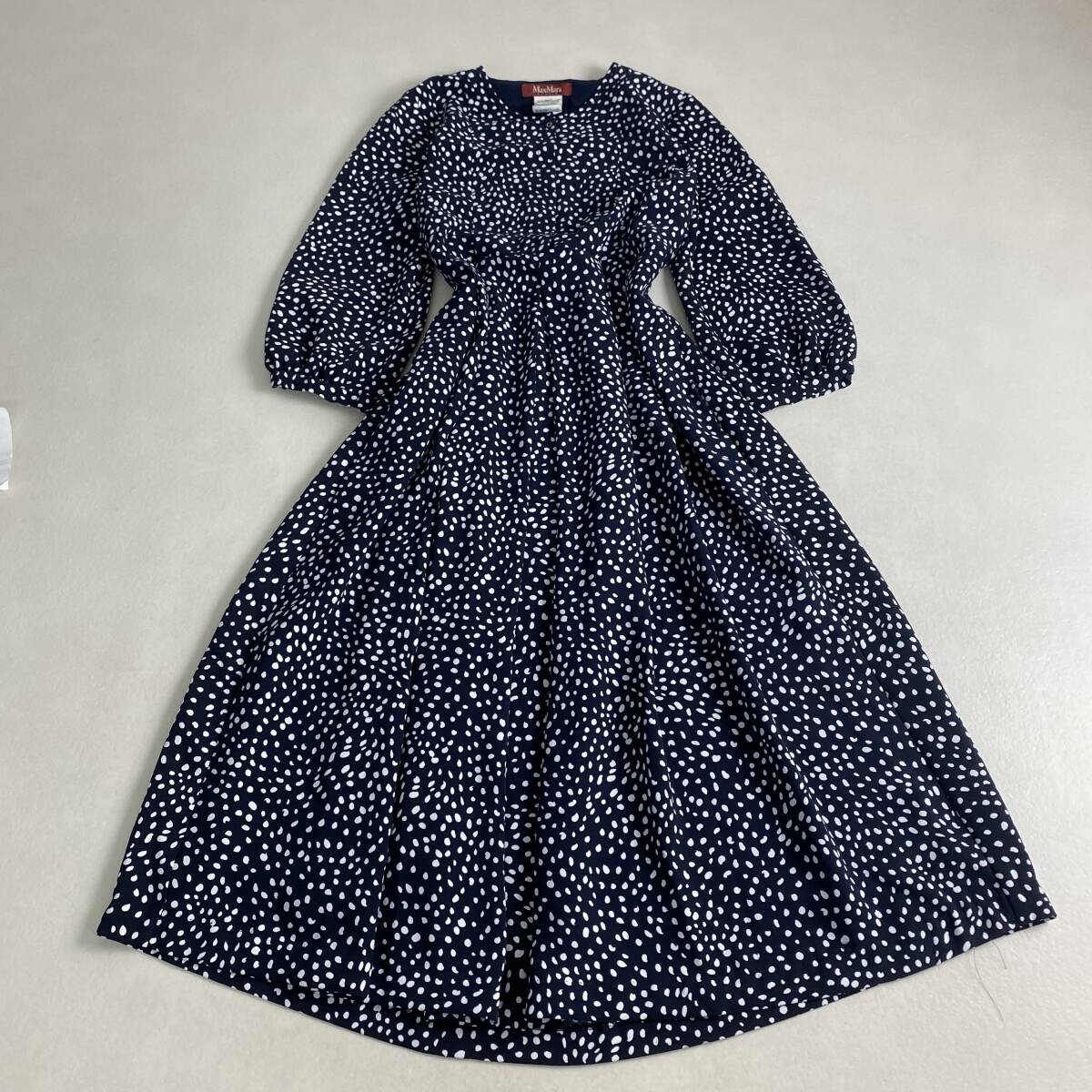 マックスマーラ ロングワンピース MaxMara ドット柄 ネイビー ホワイト L・XL相当