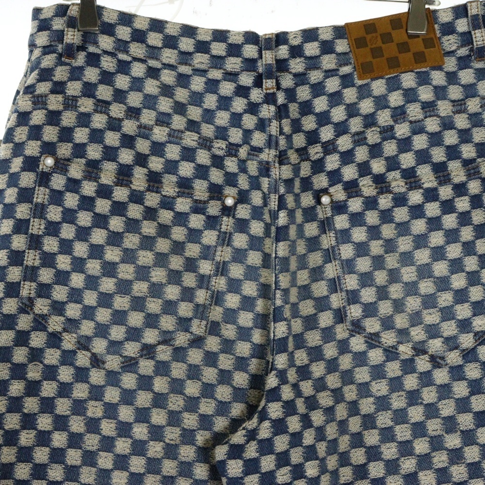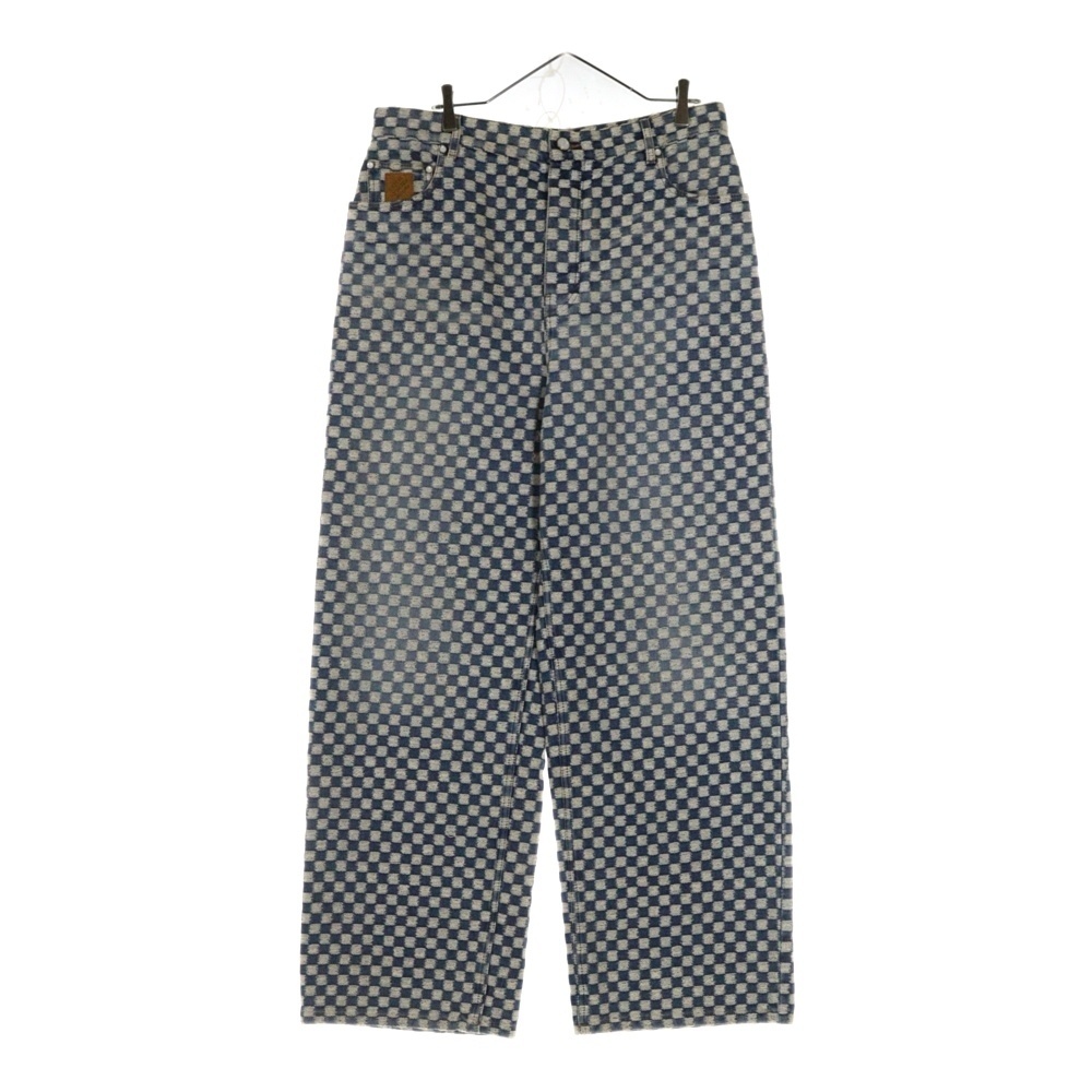 LOUIS VUITTON ルイヴィトン 25AW ダミエ ワイドレッグジーンズ レザーパッチ 5ポケットデニム インディゴ
