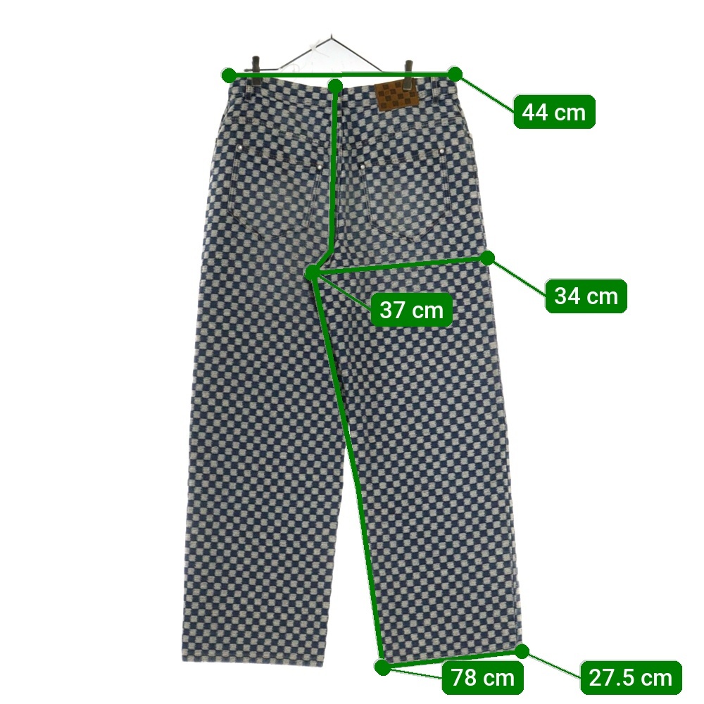 実寸 ウエスト:44センチ ワタリ:34センチ 股上:37センチ 股下:78センチ 裾幅:27.5センチ
