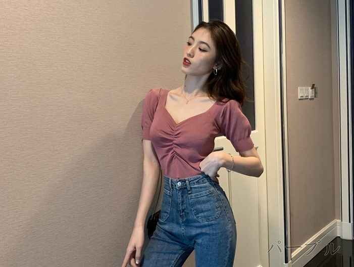 【F】着丈約46cm バスト約60-108cm 肩幅約32cm 袖丈約22cm