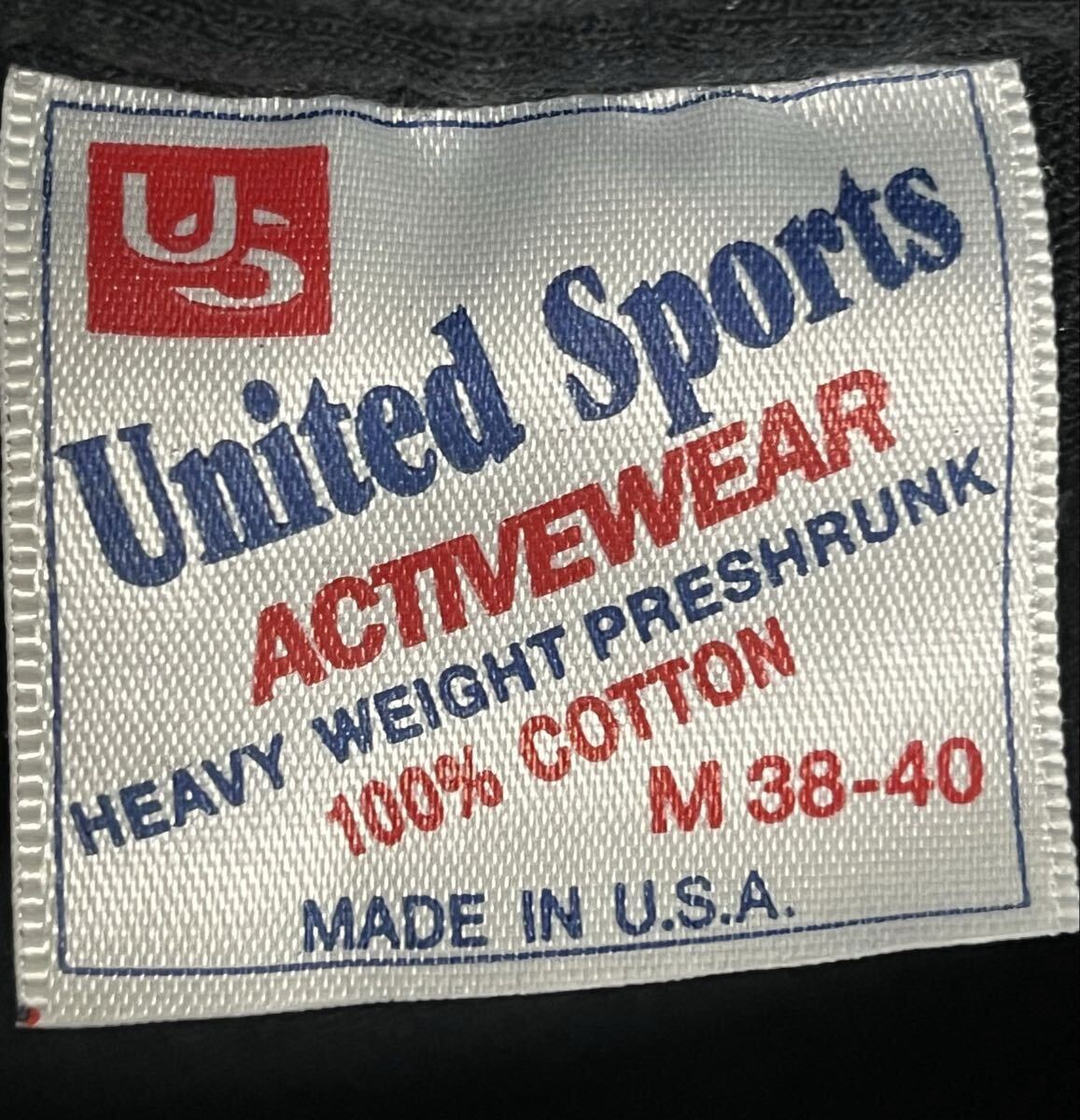 ブランド名 UNITED SPORTS・表記サイズ M・肩幅 49cm・身幅 58cm・着丈 62cmです。プリントに少し割れ・多少使用感はありますが、全体的にはキレイな状態です。