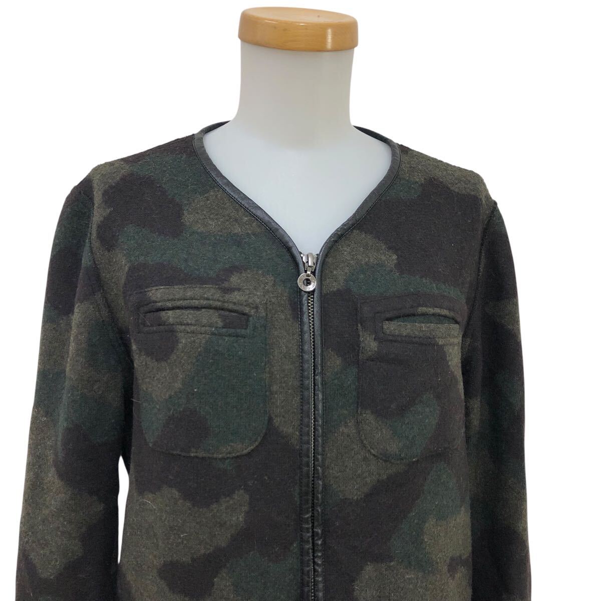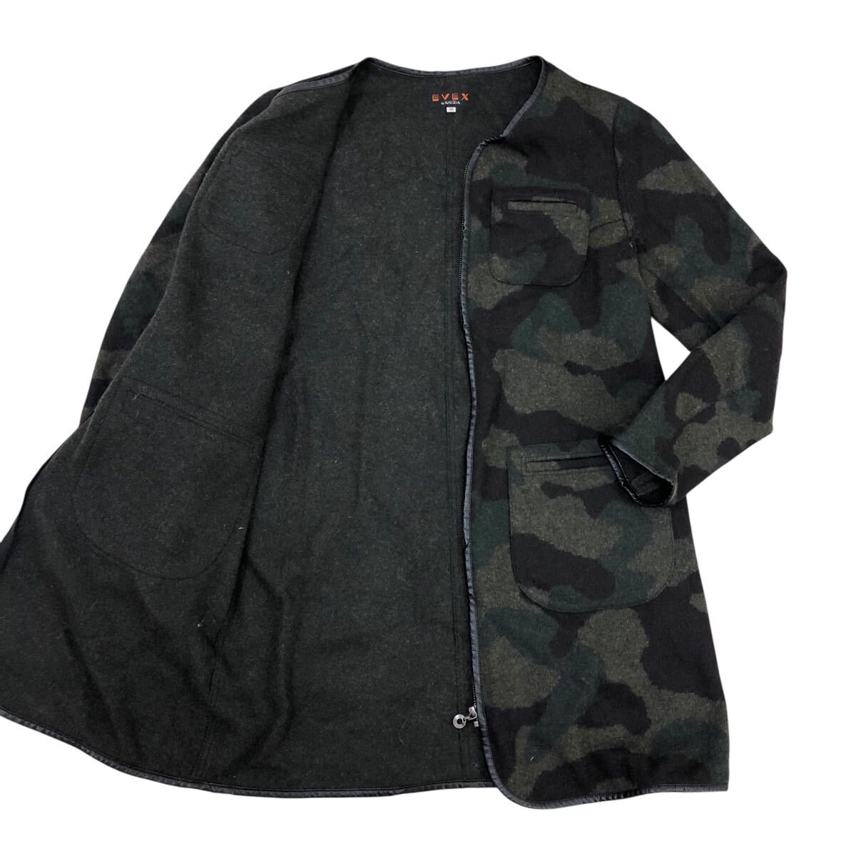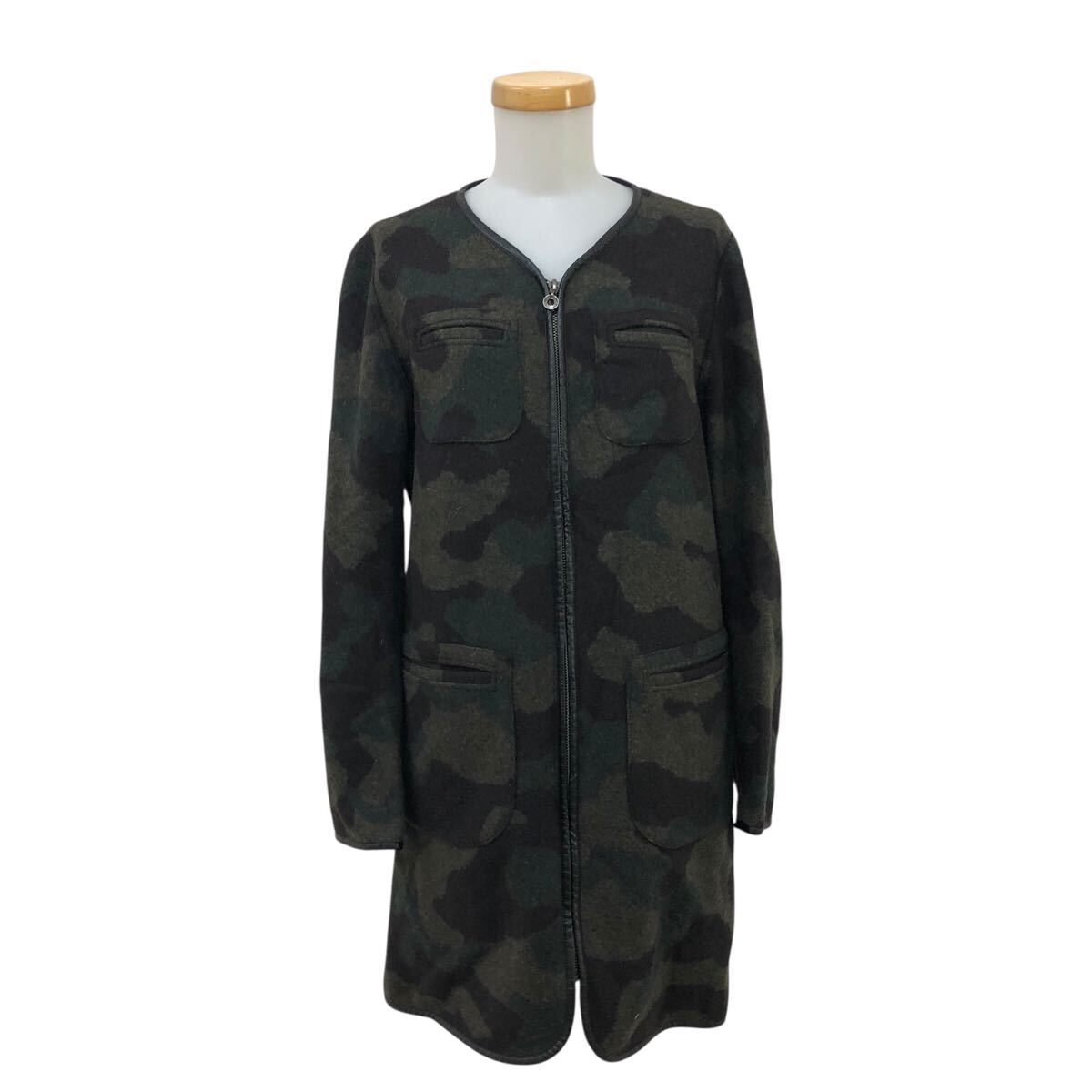 9Nm323-15 EVEX by KRIZIA エヴェックス バイ クリツィア カモフラ 迷彩柄 パイピング ジップアップ コート 上着 羽織 アウター カーキ 40