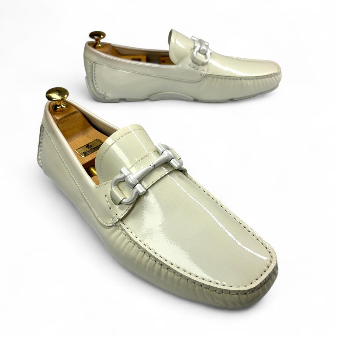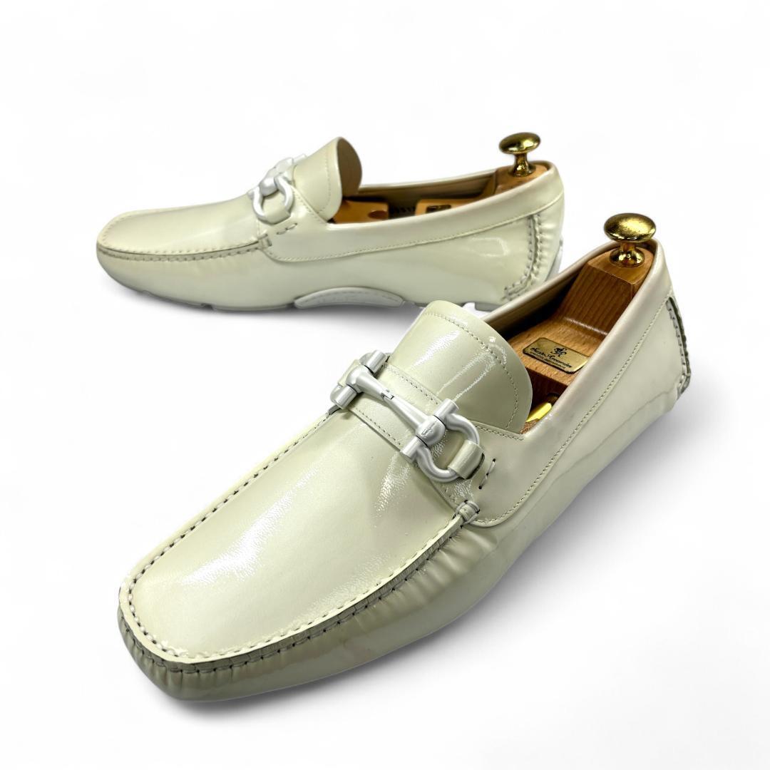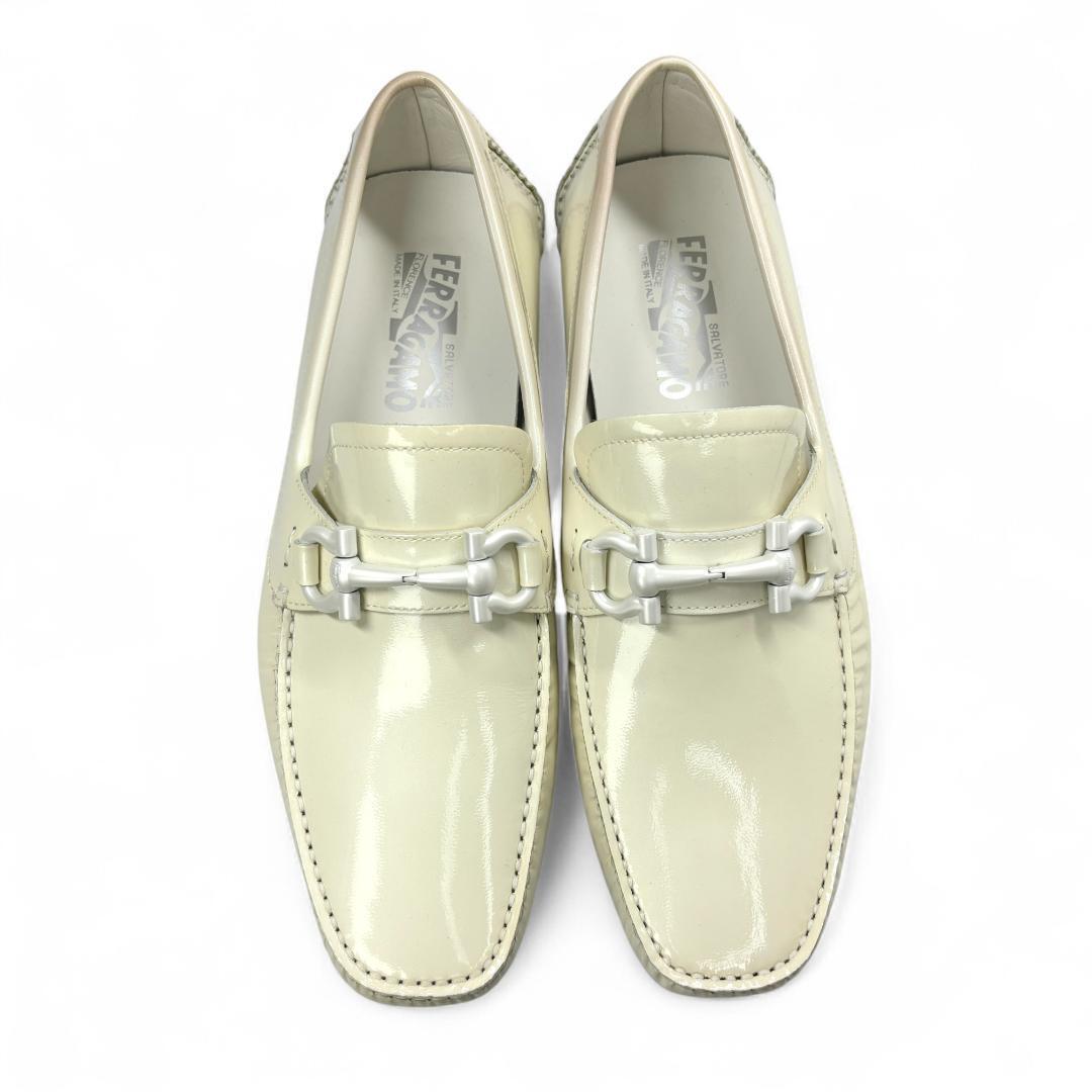 極美品 フェラガモ ferragamo PARIGI ガンチーニ スリッポン 7.5 26cm アイボリー メンズシューズ