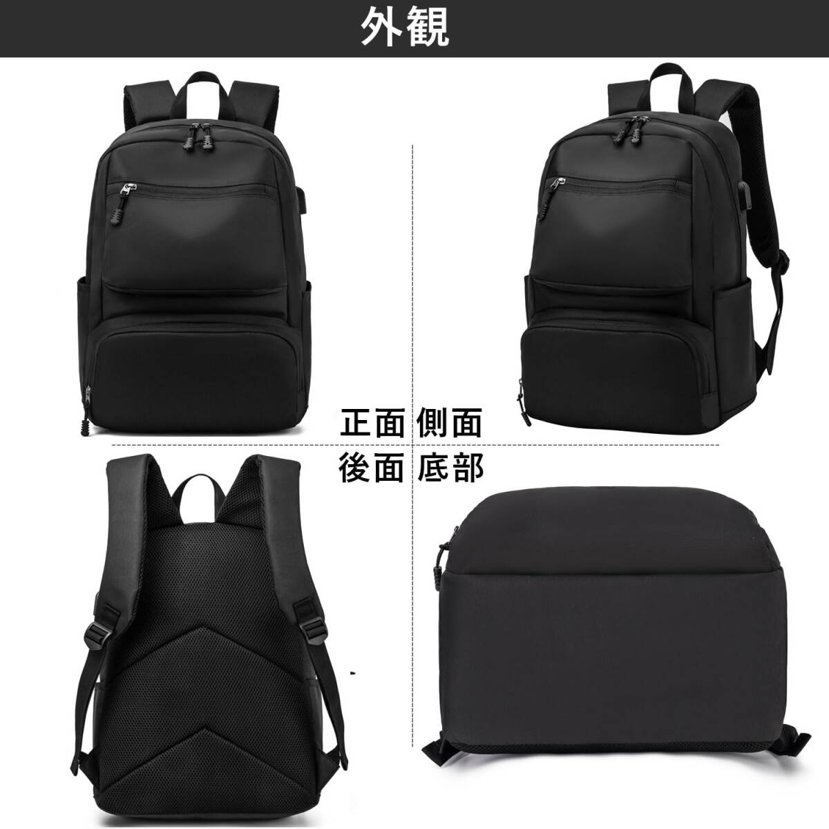 【軽量で大容量/USB充電ポート】収納力は十分にあり。A4サイズ、15.6"PC、教科書、傘、衣類、飲み物、お弁当、重い荷物を入れても安心感あり。通学や通勤や旅行や出張などにおすすめです。※バックパックの側面にUSB充電ポートあり、お手元のスマトホンを充電できます、気楽に片手で携帯電話が使えます。