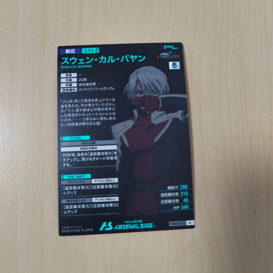 ガンダムアーセナルベース、Mレア、スウェン・カル・バヤンの出品となります。未使用品です。排出後、スリーブに入れて保管していますが初期キズなど気になさる方はご遠慮ください。配送料金は梱包代込みで全国一律、120円とさせていただきます。他の出品との同梱は対応いたします。ノークレム、ノーリターンにてお願いいたします。