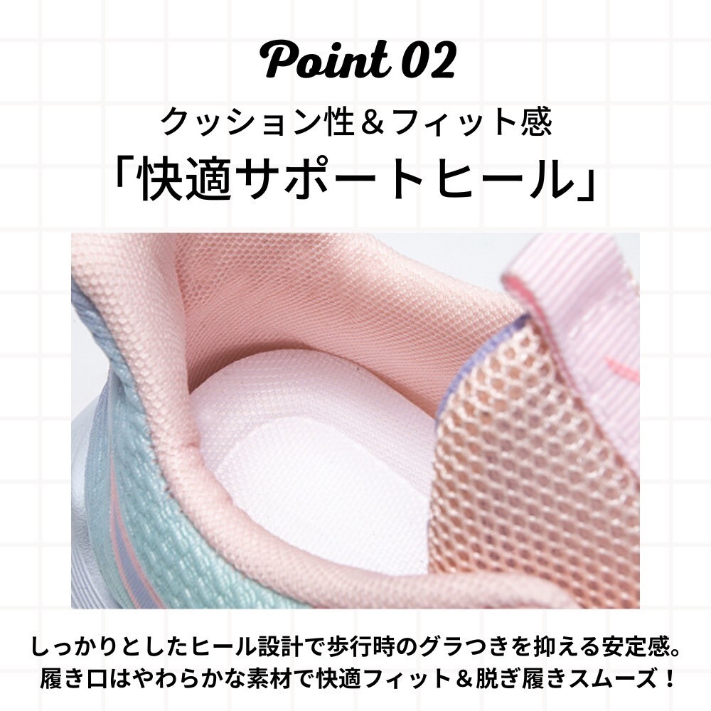 シューズ全体が柔らかくして、クッション性をUP。衝撃を吸収するので長時間歩いても楽チン。