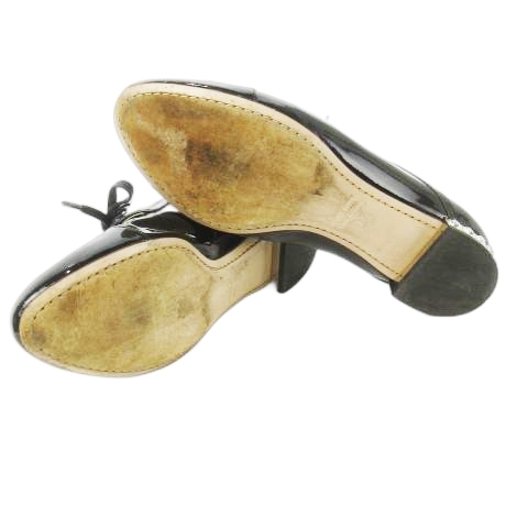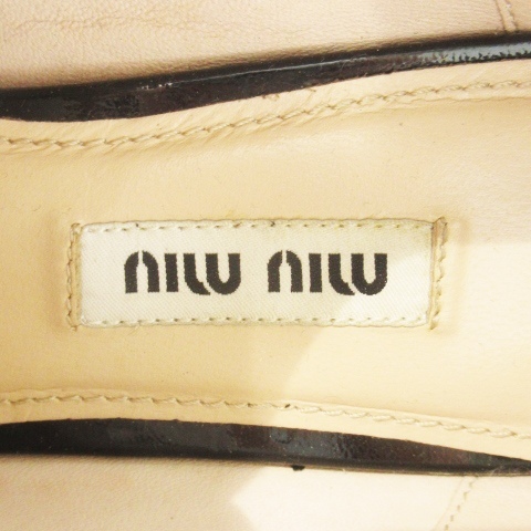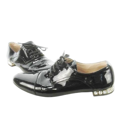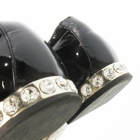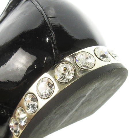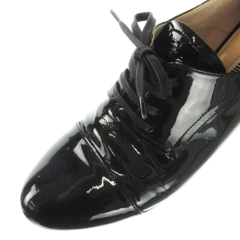 ミュウミュウ miumiu エナメルシューズ レザー 革 パテント レースアップ ストレートチップ ビジュー 37 24.0cm 黒 ブラック