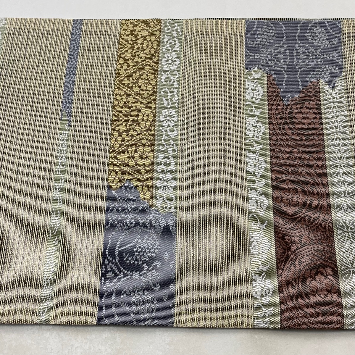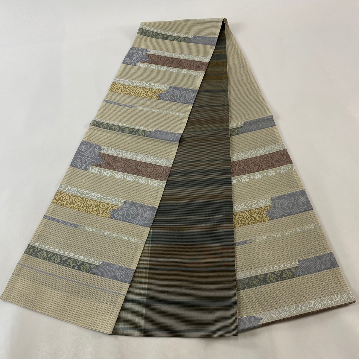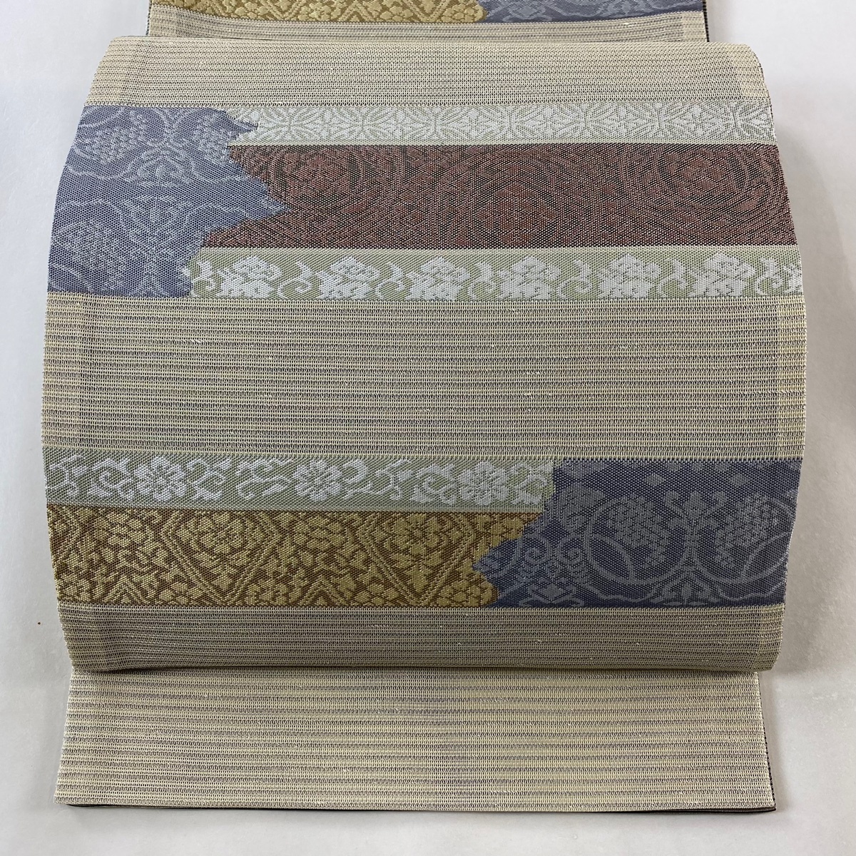 | 袋帯 美品 秀品 縞 華文 ベージュ 六通 正絹 【中古】 |