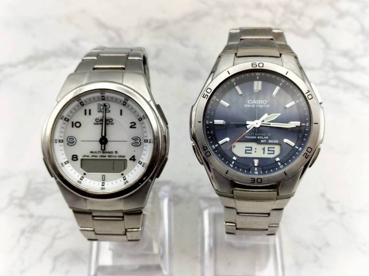 R7-612 1円~ ジャンク品 カシオ CASIO ウェーブセプター WVA-M480 WVA-M640 タフソーラー アナデジ 腕時計 まとめて 2点セット