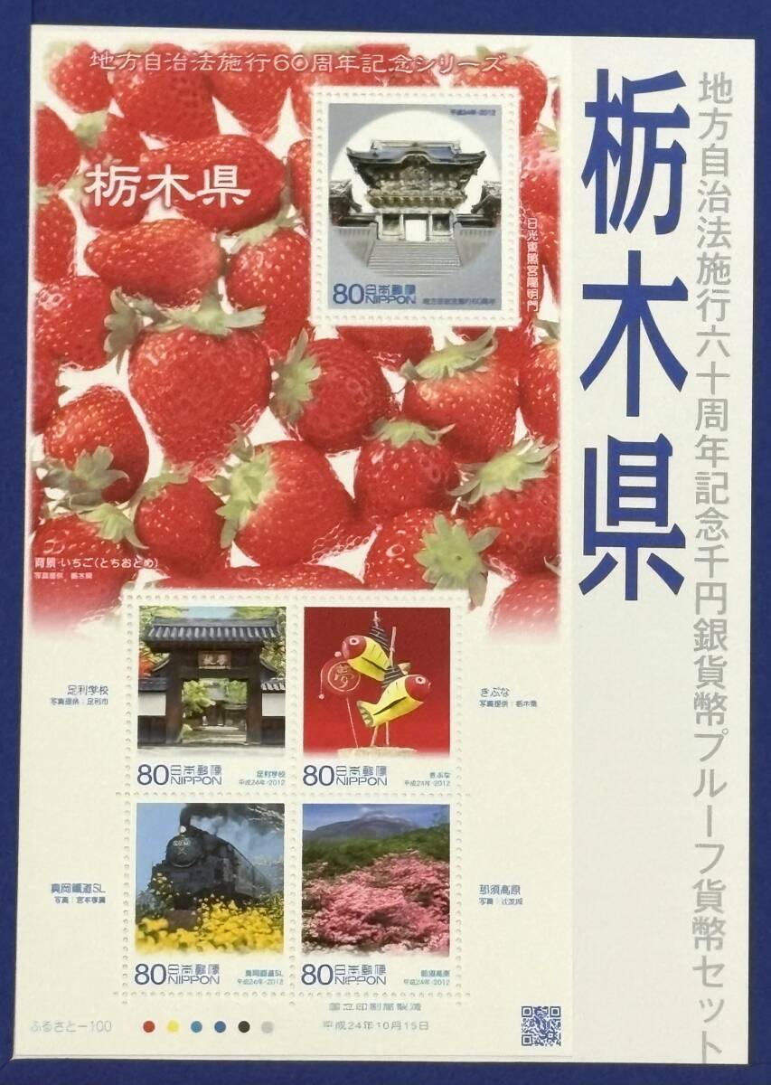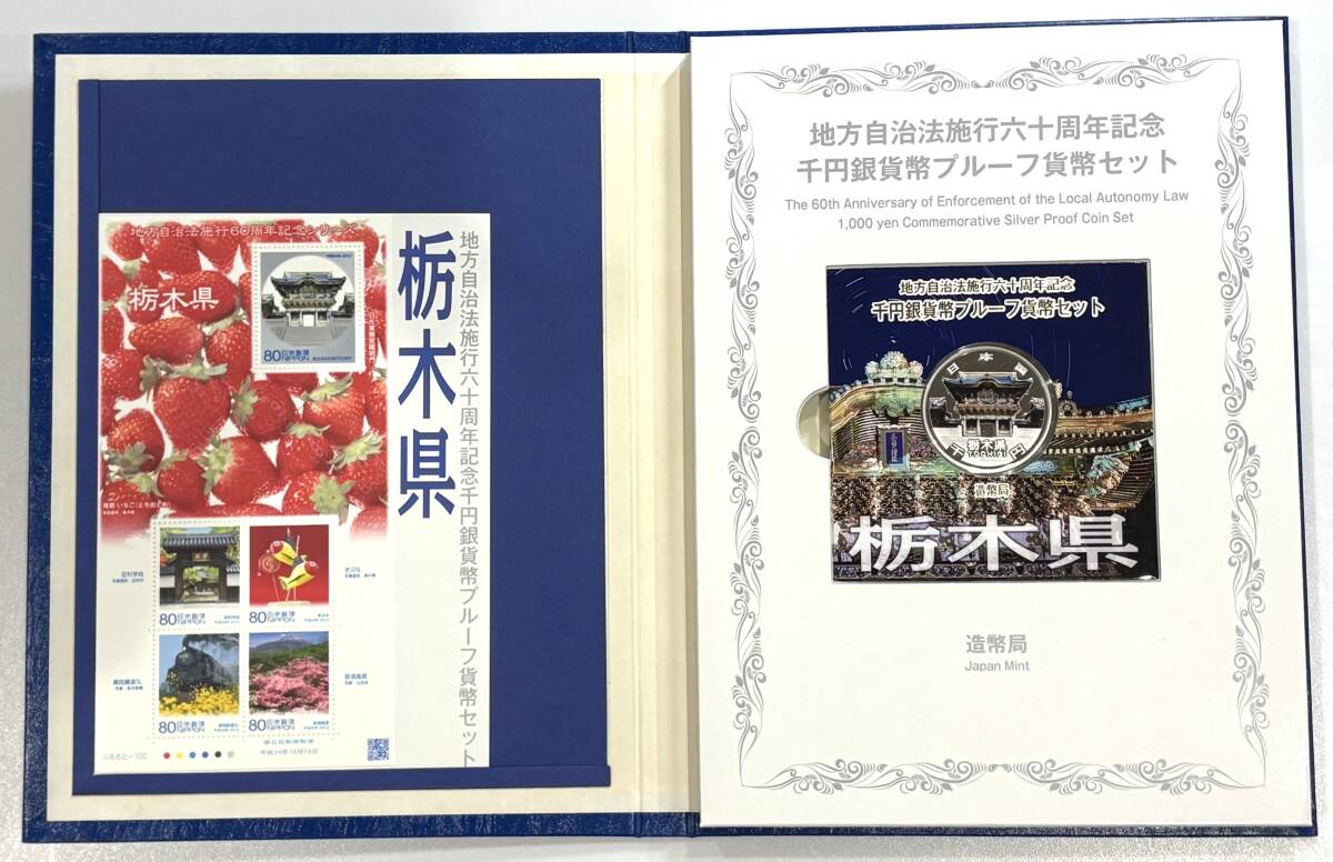 ★地方自治法施行六十周年記念★ 平成24年 千円銀貨幣プルーフ貨幣セット Bセット 記念切手付き 栃木県 造幣局