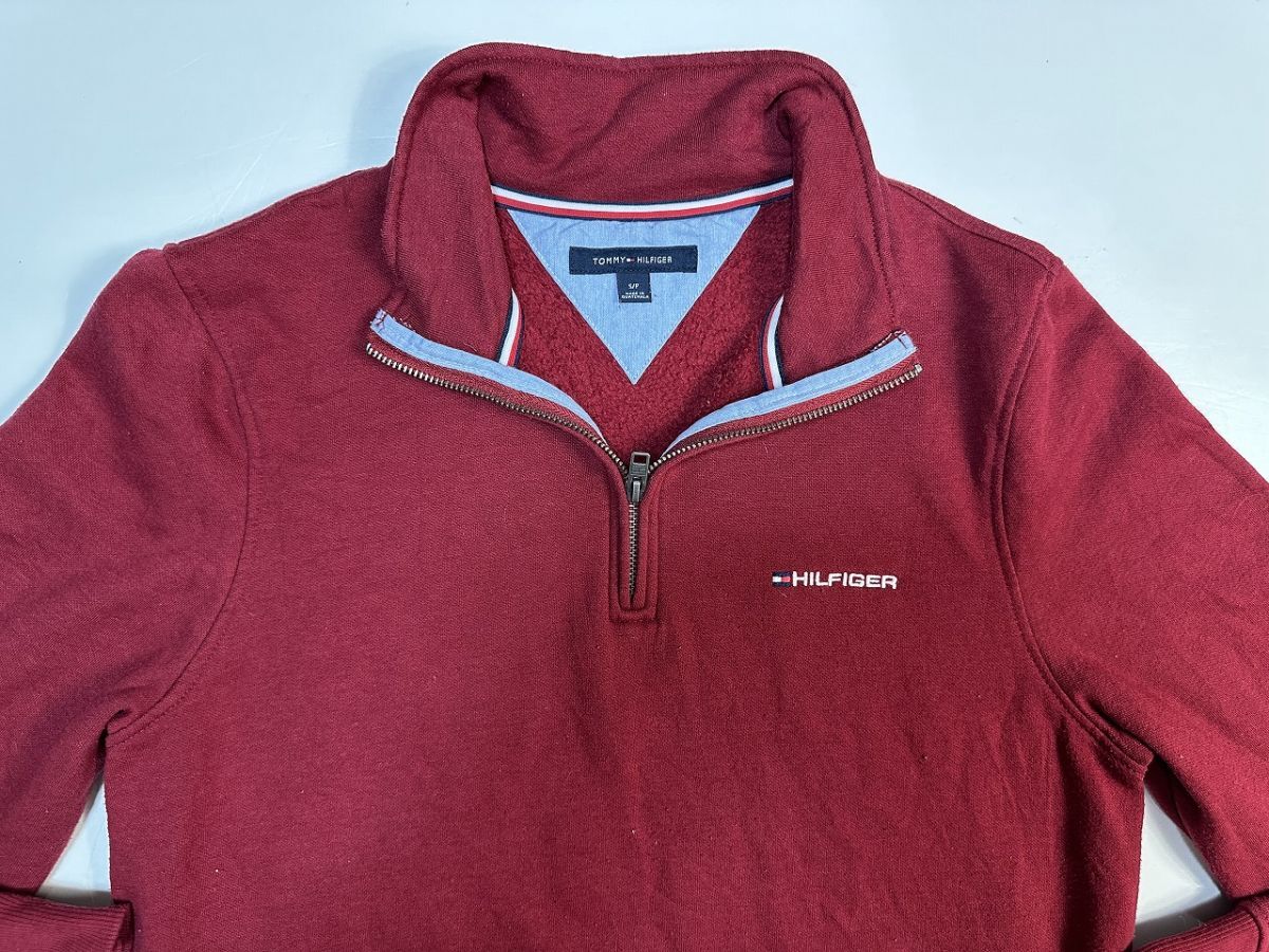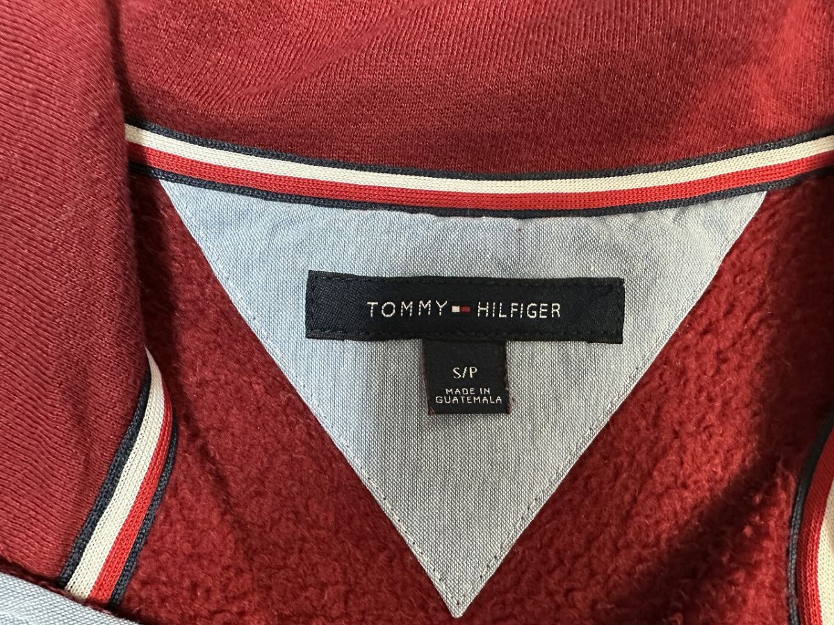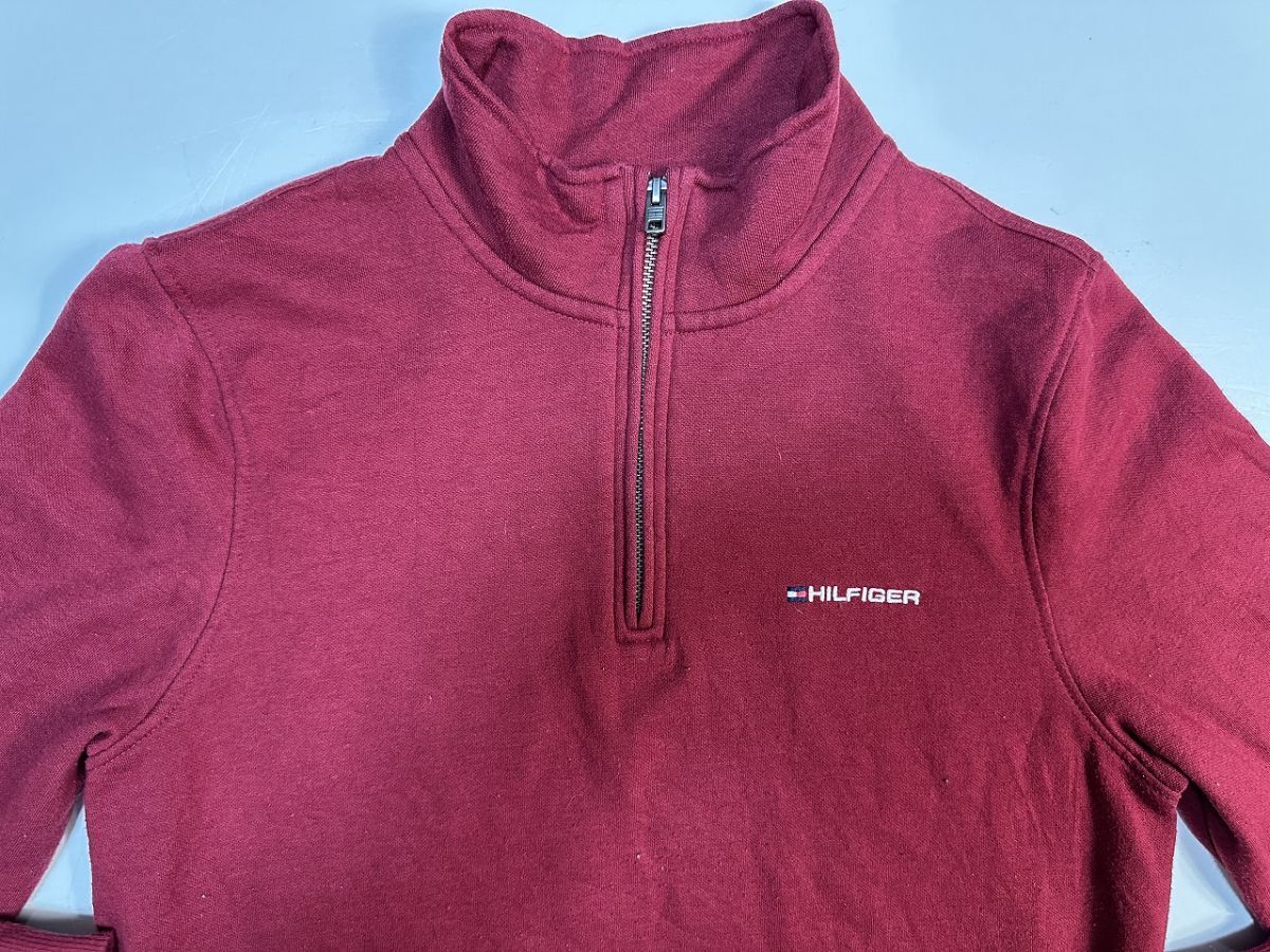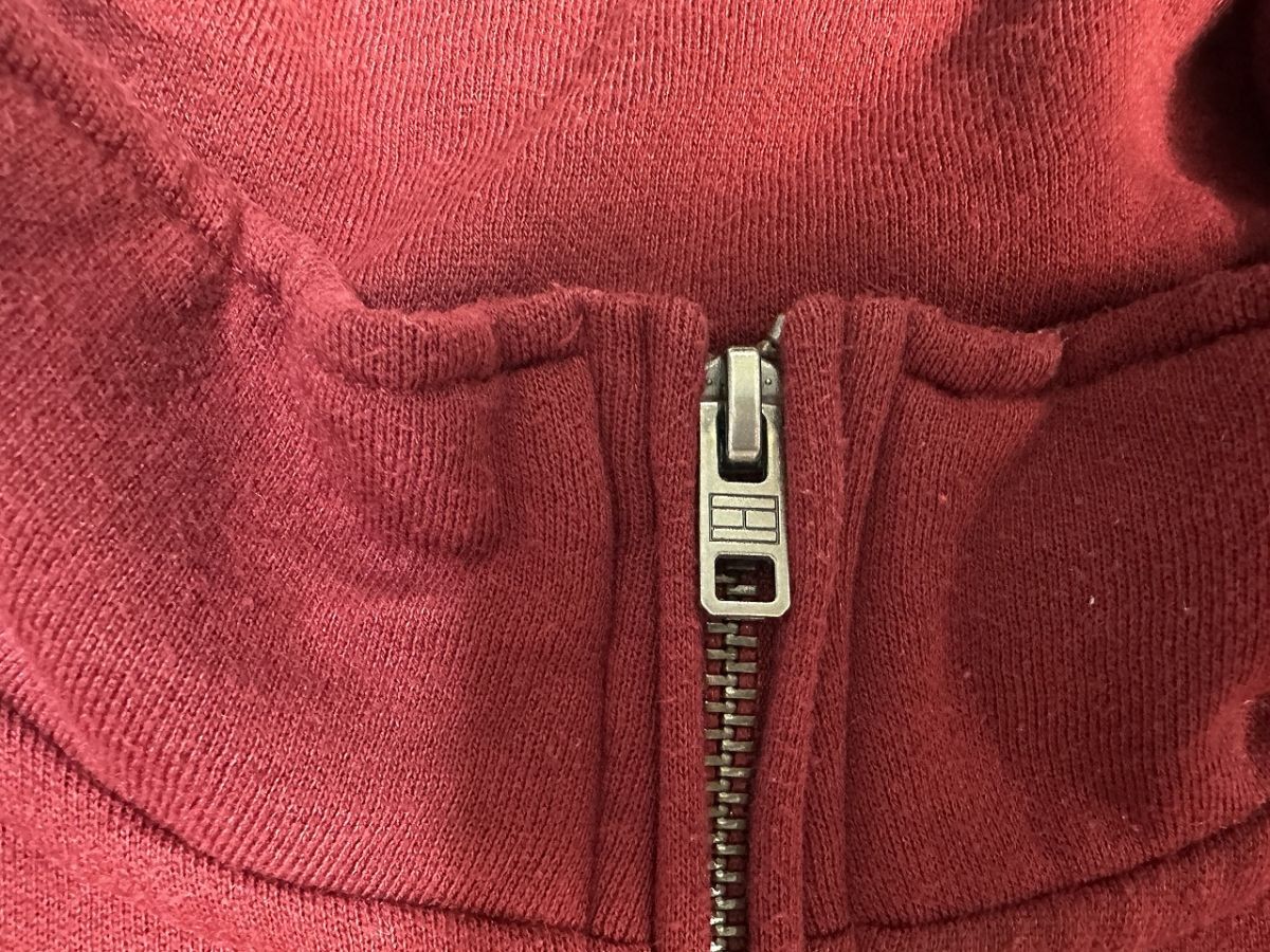 ●US USED TOMMY HILFIGER トミーヒルフィガー スウェット ハイネック ジップアップ ロゴ刺繍 レッド赤【S】裏起毛