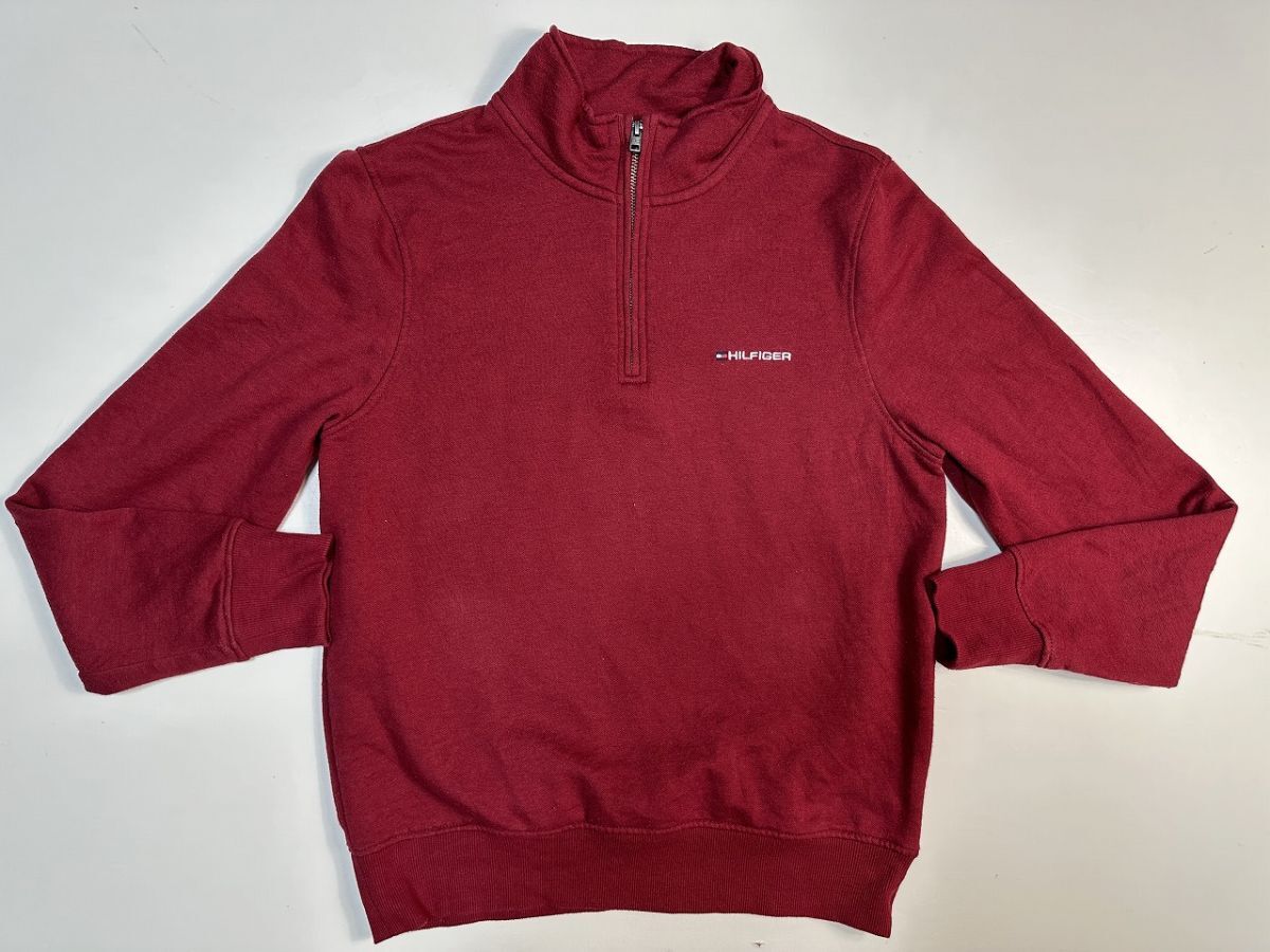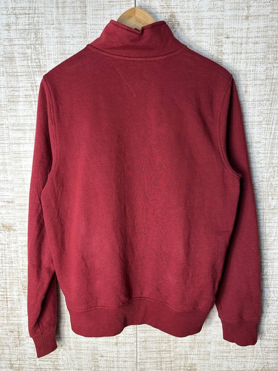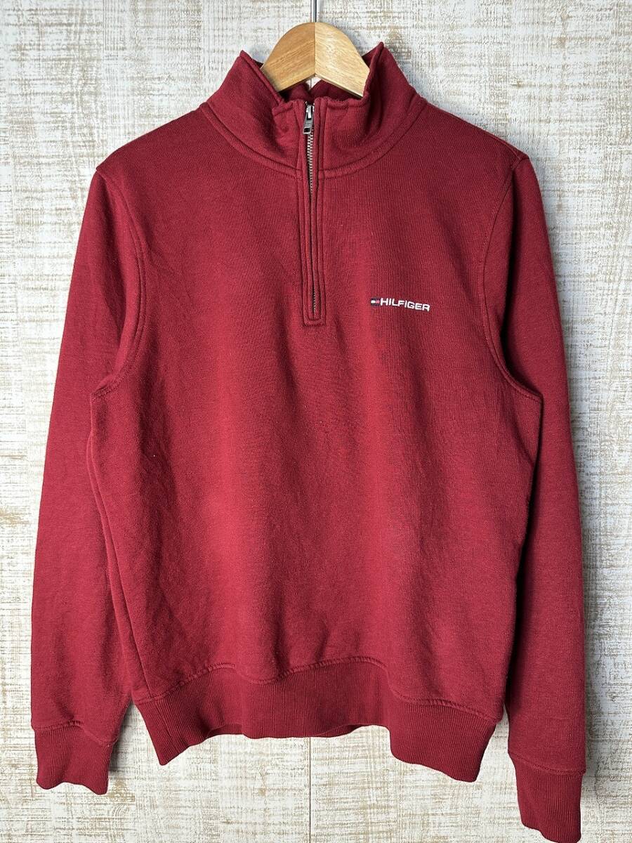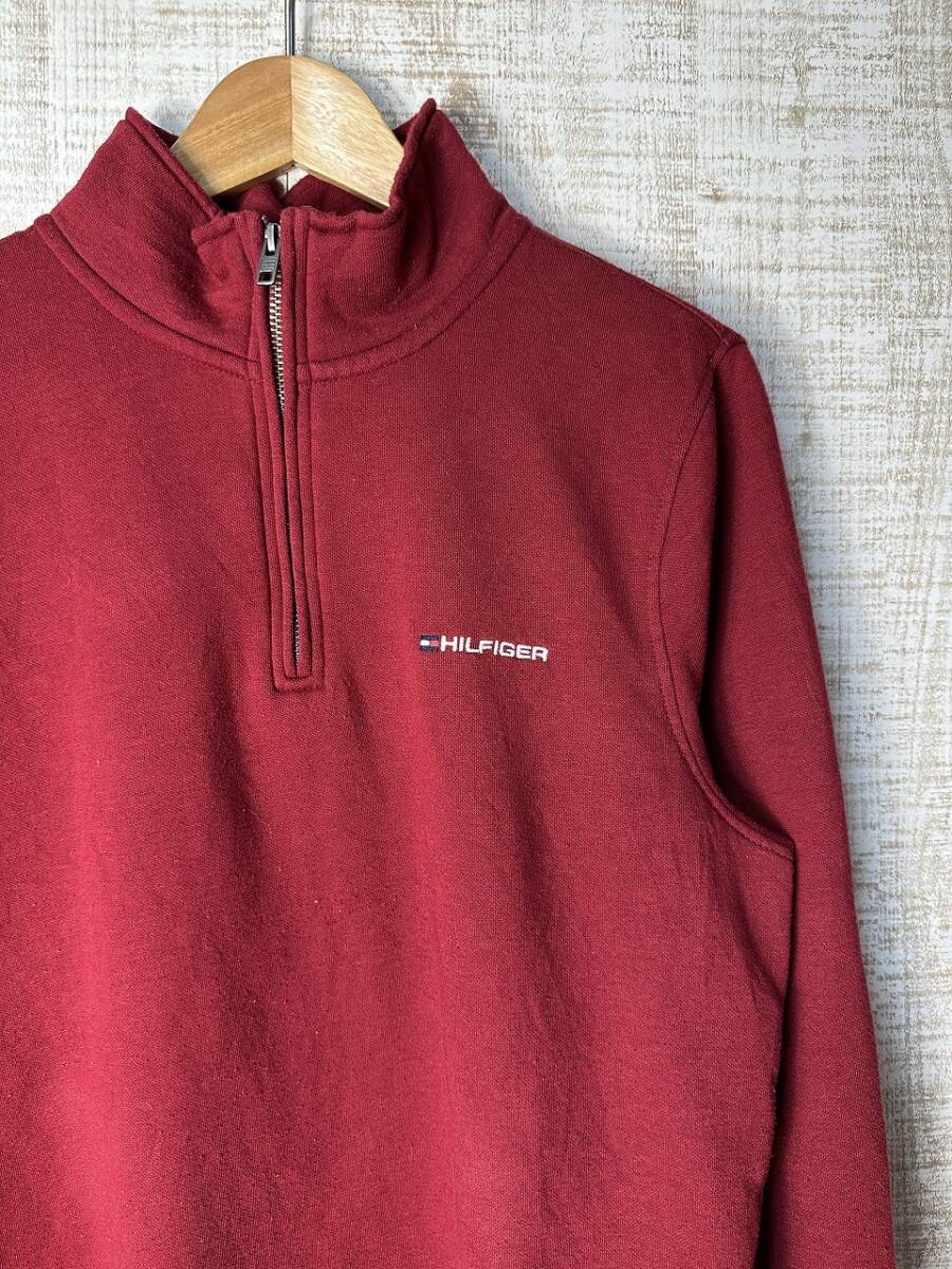 ●US USED TOMMY HILFIGER トミーヒルフィガー スウェット ハイネック ジップアップ ロゴ刺繍 レッド赤【S】裏起毛